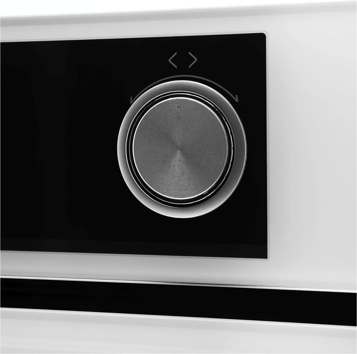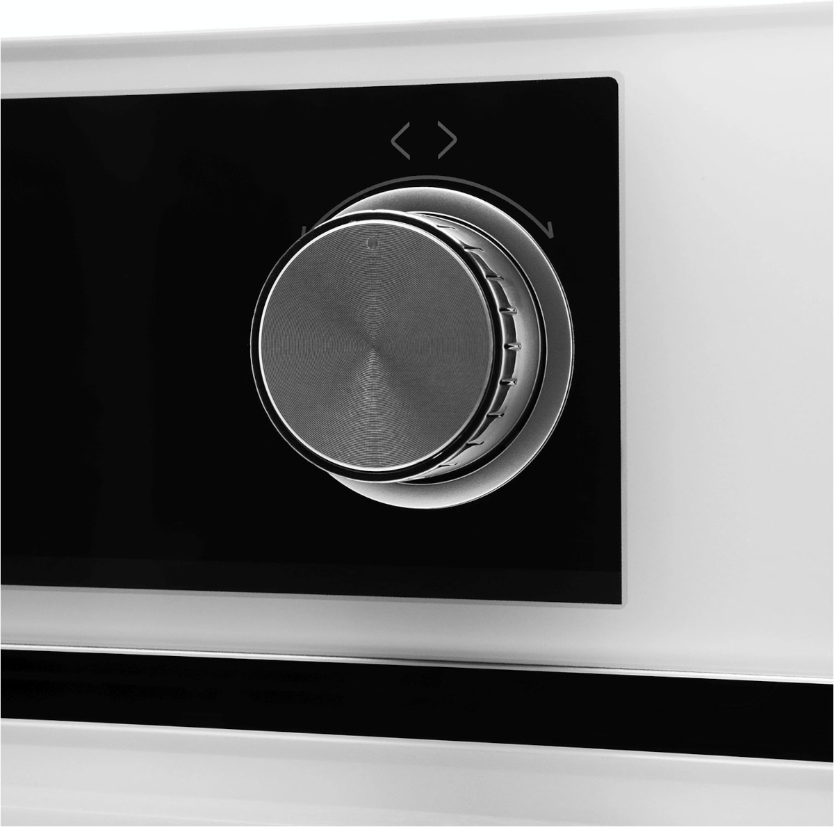 Особенности дизайна и внешней панели управления — также важный пункт при выборе духовки на кухню. В данной модели нужно обратить внимание на цвет — белый, охлаждение двери, чтобы поверхность и мебель вокруг не нагревались.