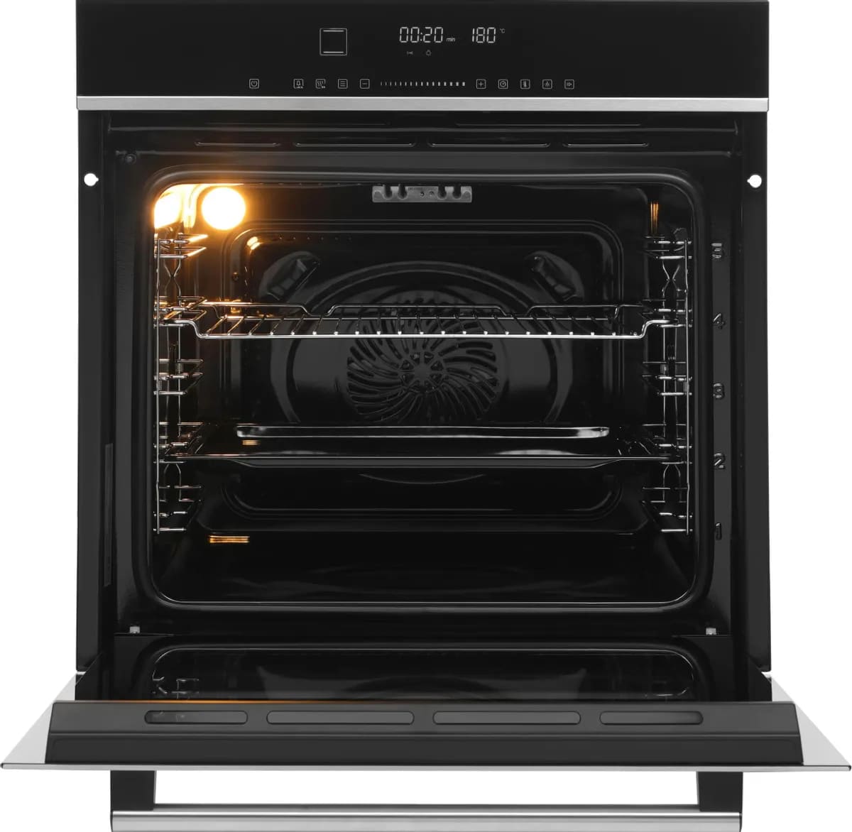 Гораздо нагляднее индикация в духовках с электронным управлением. На панели управления находится дисплей — текстовый или цифровой, на котором высвечиваются сообщения, оповещающие об активации той или иной опции. В более простых случаях духовки оснащаются сегментным ЖК-дисплеем, на который выводятся условные обозначения и числа. На нем может появляться, например, сообщение об уровне мощности гриля или микроволн, о выбранной температуре, о времени, оставшемся до отключения духовки, об запланированной отсрочке старта. TFT-дисплей имеет больший набор возможностей: на нем отображаются не только символы и цифры, но и полноценный текст, а также изображения.