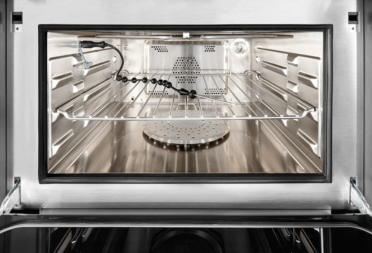 Благодаря этой функции в духовом шкафу можно не только готовить, но и разогревать, как в микроволновке. Использовать микроволны в разных моделях можно по-отдельности и в сочетании с другими режимами: грилем, паром, верхним и нижним нагревом.