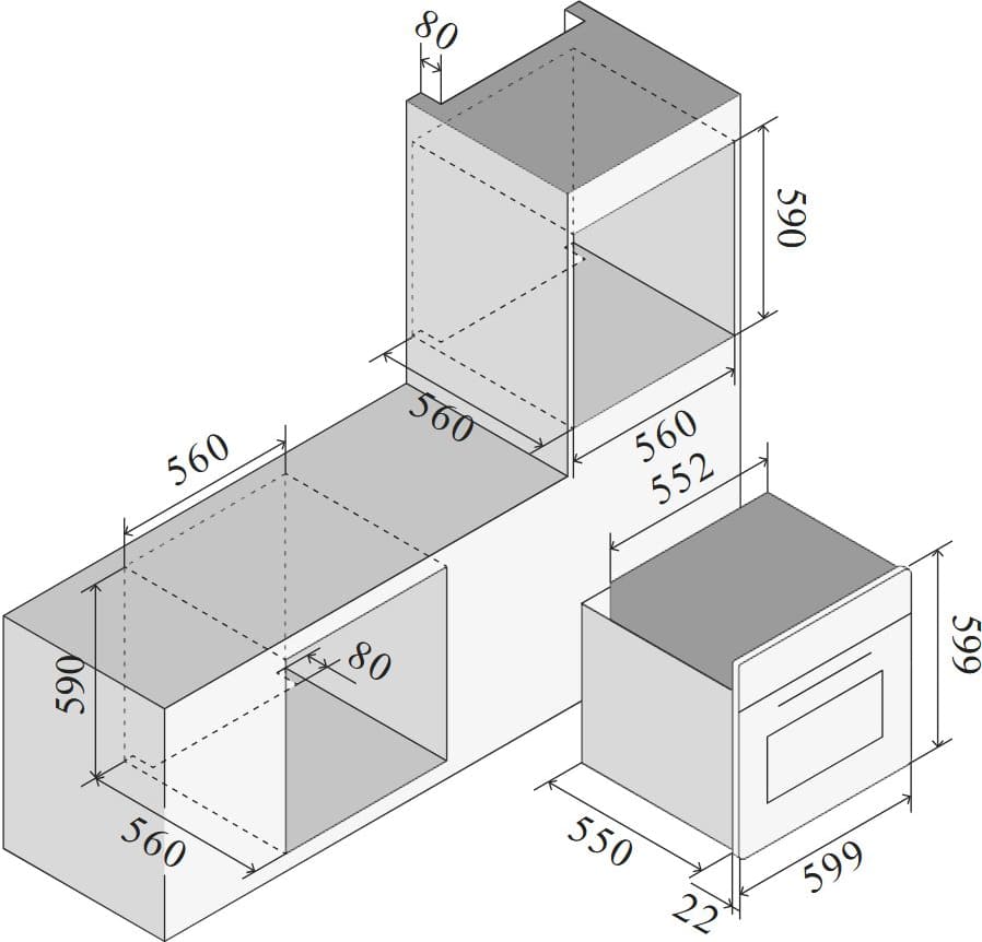 Размеры ниши для встраивания духового шкафа определяются, исходя из габаритов самого устройства. Стандартные модели обычно без труда устанавливаются в нишу шириной около 560 мм, высотой около 595 мм и глубиной примерно 550 мм. Следует помнить, что фасад устройства должен иметь большие размеры, чем величина ниши.