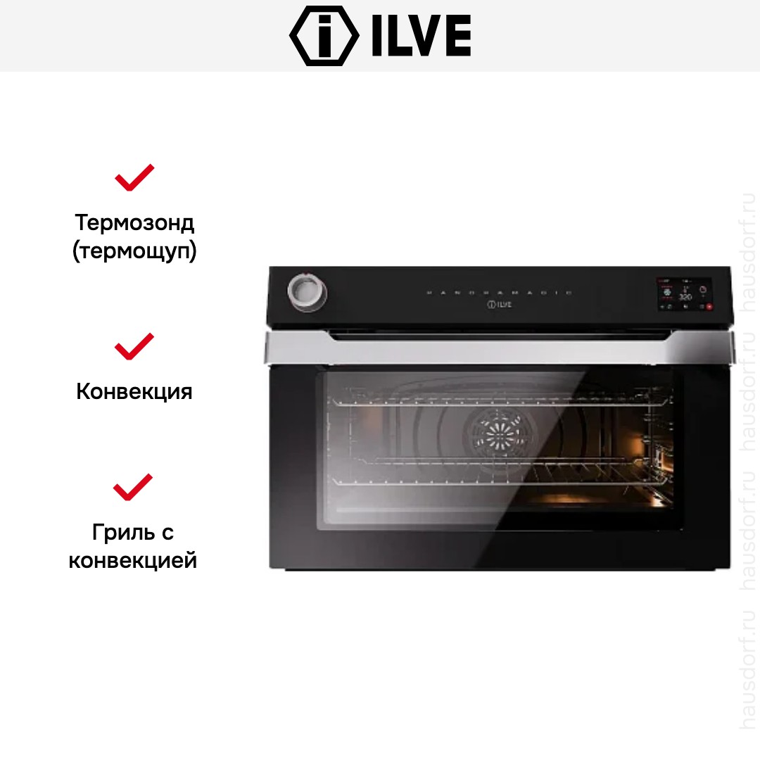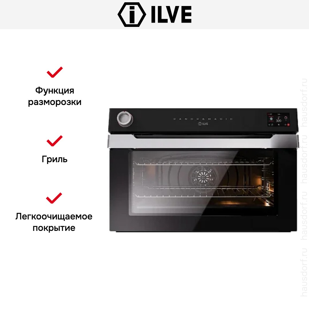Количество режимов работы в духовом шкафу Илве: 15. В число доступных программ входят: верхний нагрев, нижний нагрев, конвекция, гриль для создания хрустящей корочки, пицца, и другие. Помимо основных программ воспользуйтесь специальными возможностями этого прибора: размораживанием продуктов, чтобы сократить время на подготовку; и другими. Тип гриля в этой модели — электрический.