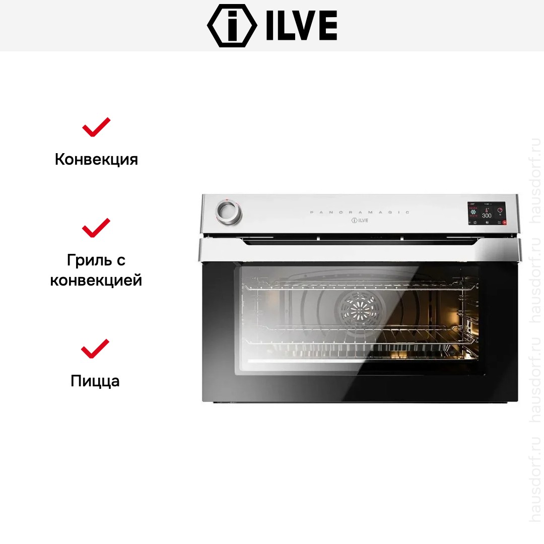 Количество режимов работы в духовом шкафу Илве: 15. В число доступных программ входят: верхний нагрев, нижний нагрев, конвекция, гриль для создания хрустящей корочки, пицца, и другие. Помимо основных программ воспользуйтесь специальными возможностями этого прибора: размораживанием продуктов, чтобы сократить время на подготовку; и другими. Тип гриля в этой модели — электрический.