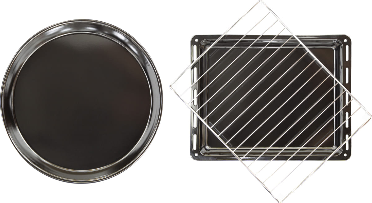 В стандартную комплектацию любого духового шкафа входят один или два противня — эмалированных или с антипригарным покрытием — и решетка. Единственный противень, как правило, имеет низкие бортики и предназначается для приготовления выпечки. Если духовка комплектуется двумя противнями, то второй отличается более высокими бортиками — его можно использовать для запекания мяса, птицы, овощных блюд. На решетке в духовке, не оснащенной грилем, обычно устанавливаются формы для запекания — стальные, керамические или стеклянные. В духовках премиум-класса количество противней может быть увеличено: к стандартному комплекту добавляются противни с перфорацией для мяса, специальные поддоны для сбора выделившегося сока.