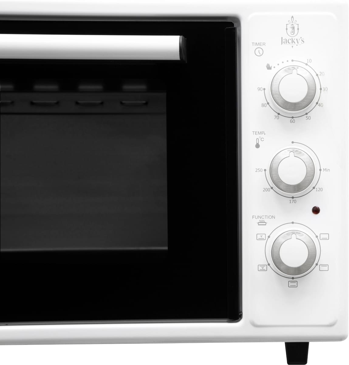 Мини-печь Jacky`s JO EW48M — это современное кухонное устройство, сочетающее в себе увеличенный внутренний объём и компактные внешние габариты, что делает его идеальным выбором для тех, кто стремится к практичности без ущерба для функциональности. При высоте 46,46 см, ширине 59 см и глубине 33 см модель предлагает больше места для приготовления блюд по сравнению с классическими мини-печами, при этом её можно разместить на столешнице или в нише. Прибор относится к категории независимых электрических духовых шкафов, что обеспечивает гибкость в установке и эксплуатации. Управление осуществляется механическим способом с помощью поворотных регуляторов — простое, надёжное и интуитивно понятное решение, не требующее освоения сложных интерфейсов. Диапазон регулировки температуры составляет от 50 до 250 градусов Цельсия, что позволяет не только запекать, жарить и готовить на гриле, но и использовать режим подогрева или медленной сушки продуктов. Встроенная функция таймера добавляет удобства, избавляя от необходимости постоянно контролировать процесс приготовления. Устройство подключается к стандартной розетке и не требует особых условий электропитания. Габариты упаковки — 50×64×46,9 см — обеспечивают надёжную защиту при транспортировке и хранении. Благодаря продуманной конструкции печь равномерно распределяет тепло, обеспечивая качественный результат даже при одновременном приготовлении нескольких блюд. Её можно использовать как основной или дополнительный источник нагрева — в городской квартире, на даче, в гостиничном номере или студии. Эстетичный внешний вид гармонично вписывается в любой интерьер, а прочные материалы корпуса гарантируют долговечность эксплуатации. Эта модель станет незаменимым помощником для любителей домашней кухни, ценящих простоту, надёжность и эффективность.