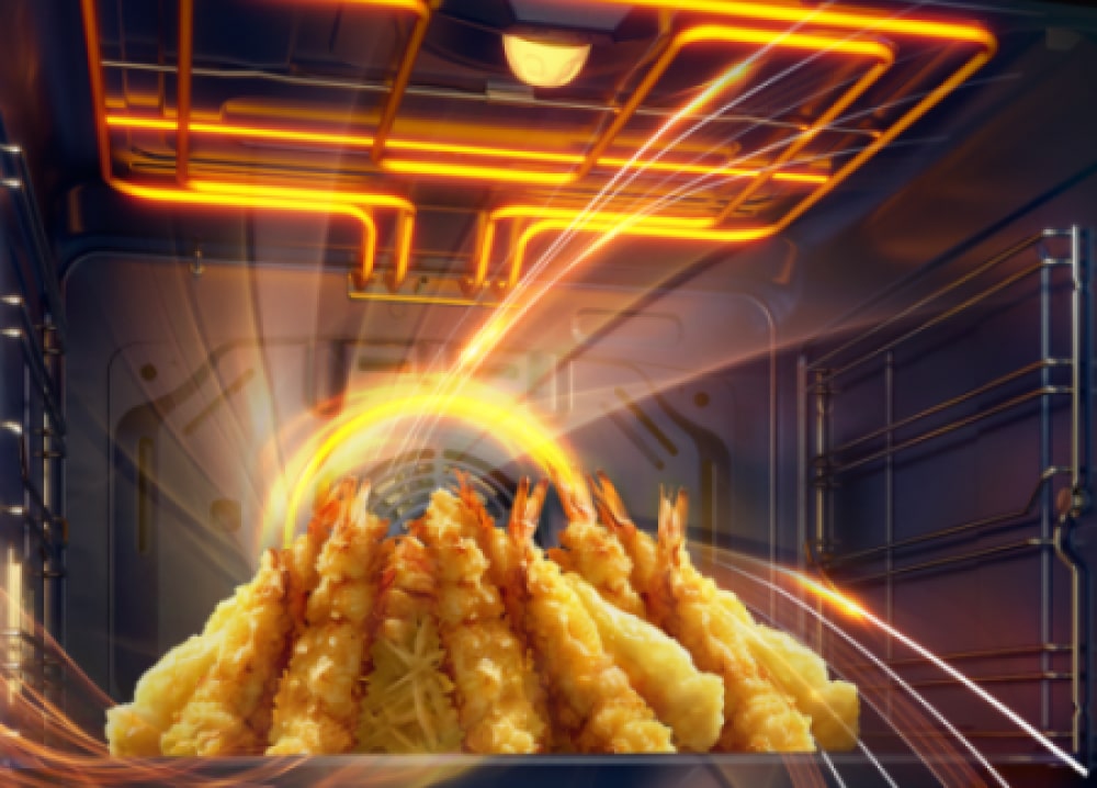 Этот режим позволяет готовить большой набор блюд — например, запекать птицу и рыбу целиком, большие куски мяса, готовить различные запеканки, в том числе овощные, выпекать печенье, сухарики и другие изделия, которые не требуют высокого подъема теста. Продуманное направление воздушных потоков надежно предохраняет блюда от смешивания запахов.
