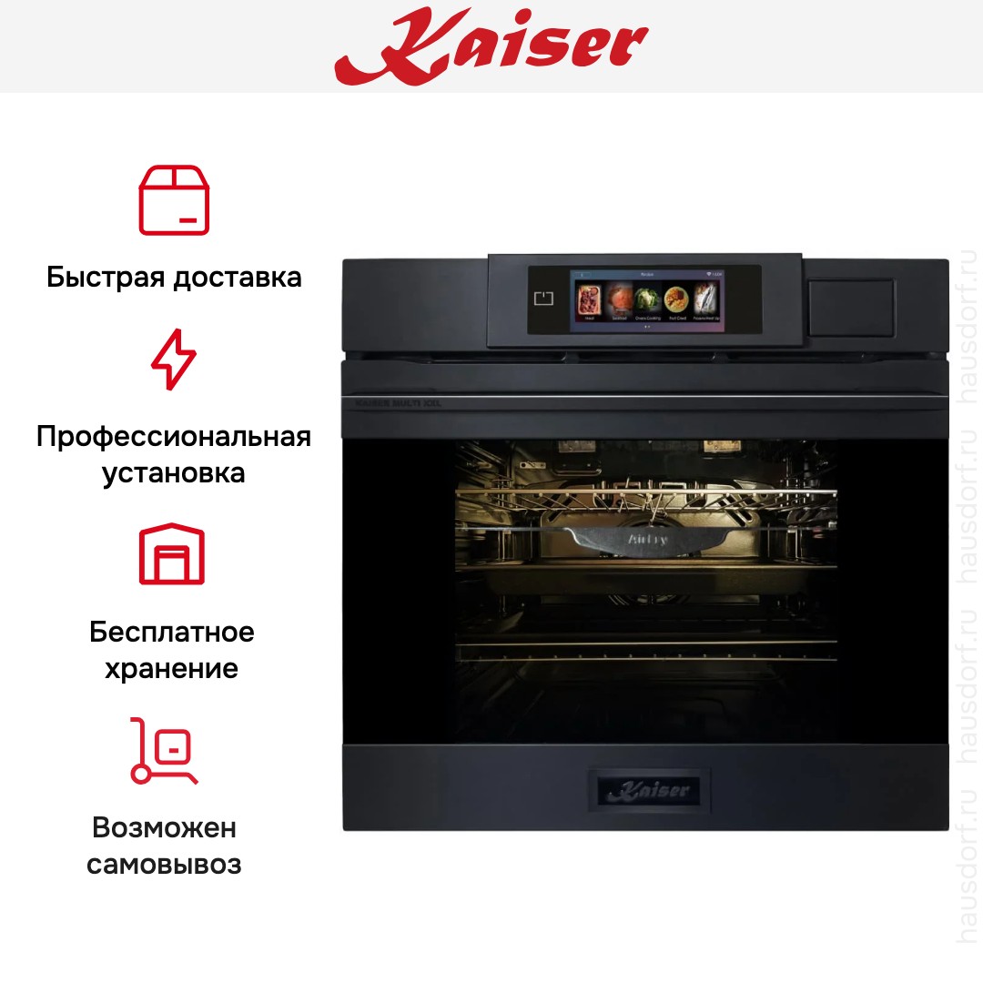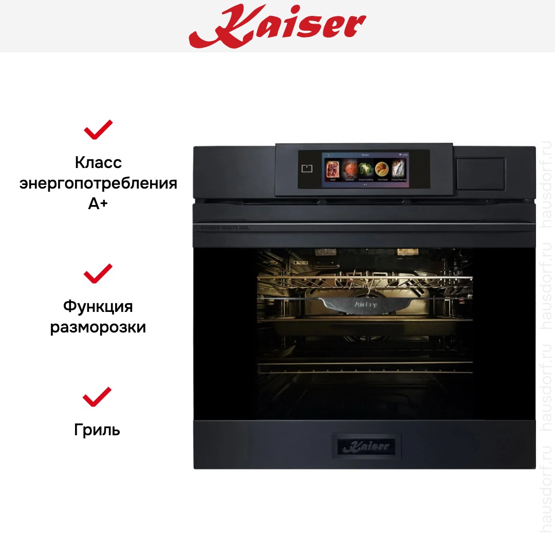 Готовьте свои лучшие блюда и пробуйте новые рецепты с духовым шкафом Kaiser EH 6341! Стандартные размеры и большой объем внутренней камеры — выбор тех, кто много готовит для семьи или частых праздничных встреч с друзьями. Желательно заранее продумать расположение такой модели в кухонном гарнитуре.