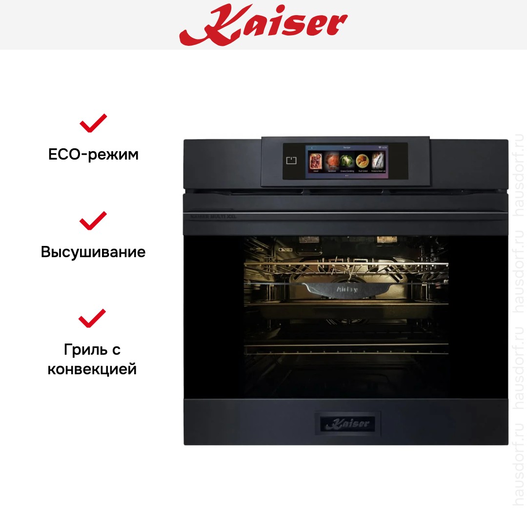 Готовьте свои лучшие блюда и пробуйте новые рецепты с духовым шкафом Kaiser EH 6347! Стандартные размеры и большой объем внутренней камеры — выбор тех, кто много готовит для семьи или частых праздничных встреч с друзьями. Желательно заранее продумать расположение такой модели в кухонном гарнитуре.