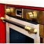 Цветные фасады духовок можно найти у таких производителей, как итальянские Smeg, ILVE, Restart, Bertazzoni, немецкие Kuppersberg и Kaiser. Эти фирмы предлагают духовки с фасадами красного, зеленого, синего, коричневого цветов с богатой и оригинальной фурнитурой, а также интересные варианты в цвете меди и платины.