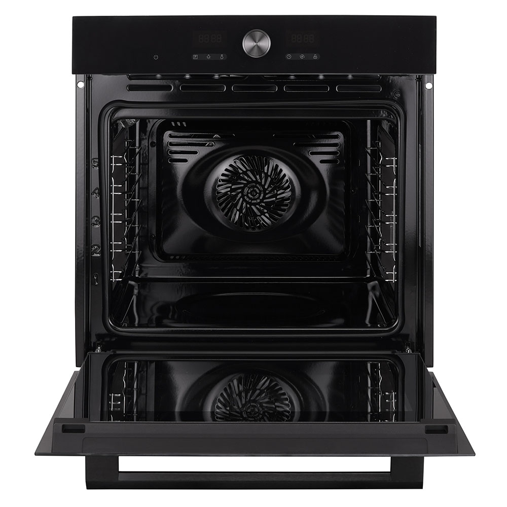 Особенности дизайна и внешней панели управления — также важный пункт при выборе духовки на кухню. В данной модели нужно обратить внимание на цвет — черный,