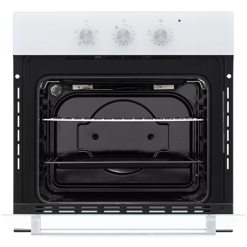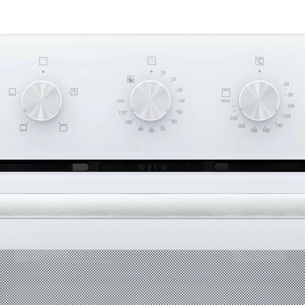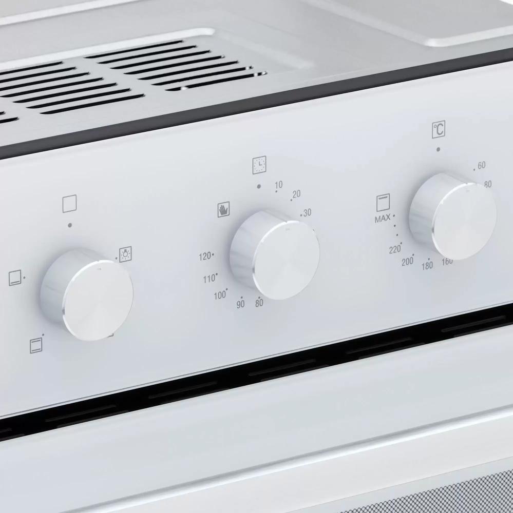 Особенности дизайна и внешней панели управления — также важный пункт при выборе духовки на кухню. В данной модели нужно обратить внимание на цвет — белый, Механическая панель управления позволяет быстро разобраться в настройке программ и не требует чрезмерных усилий.