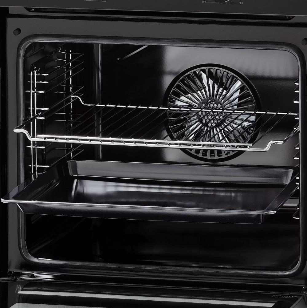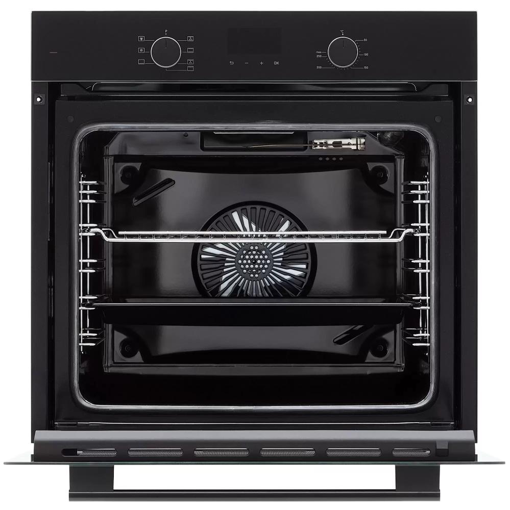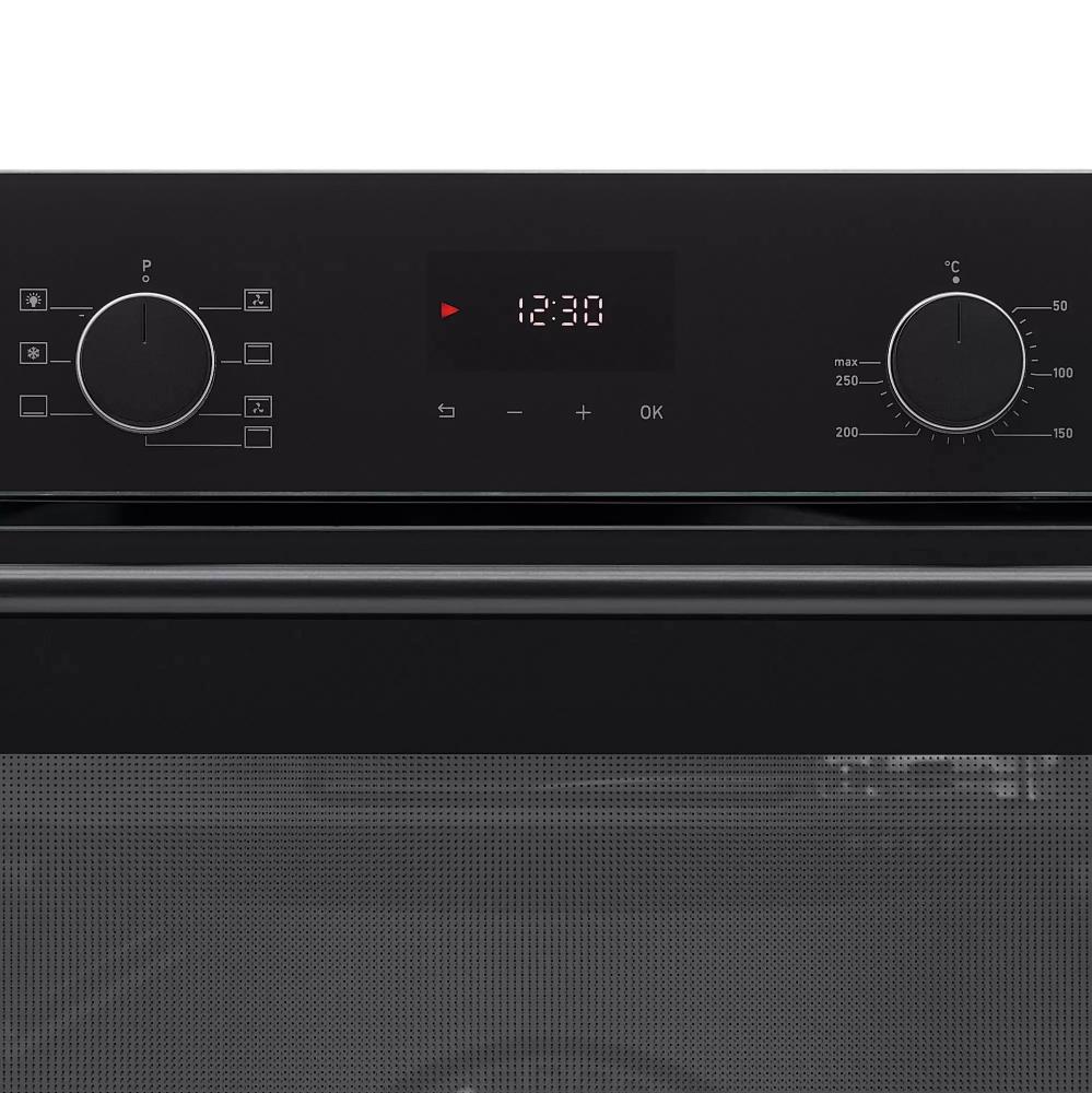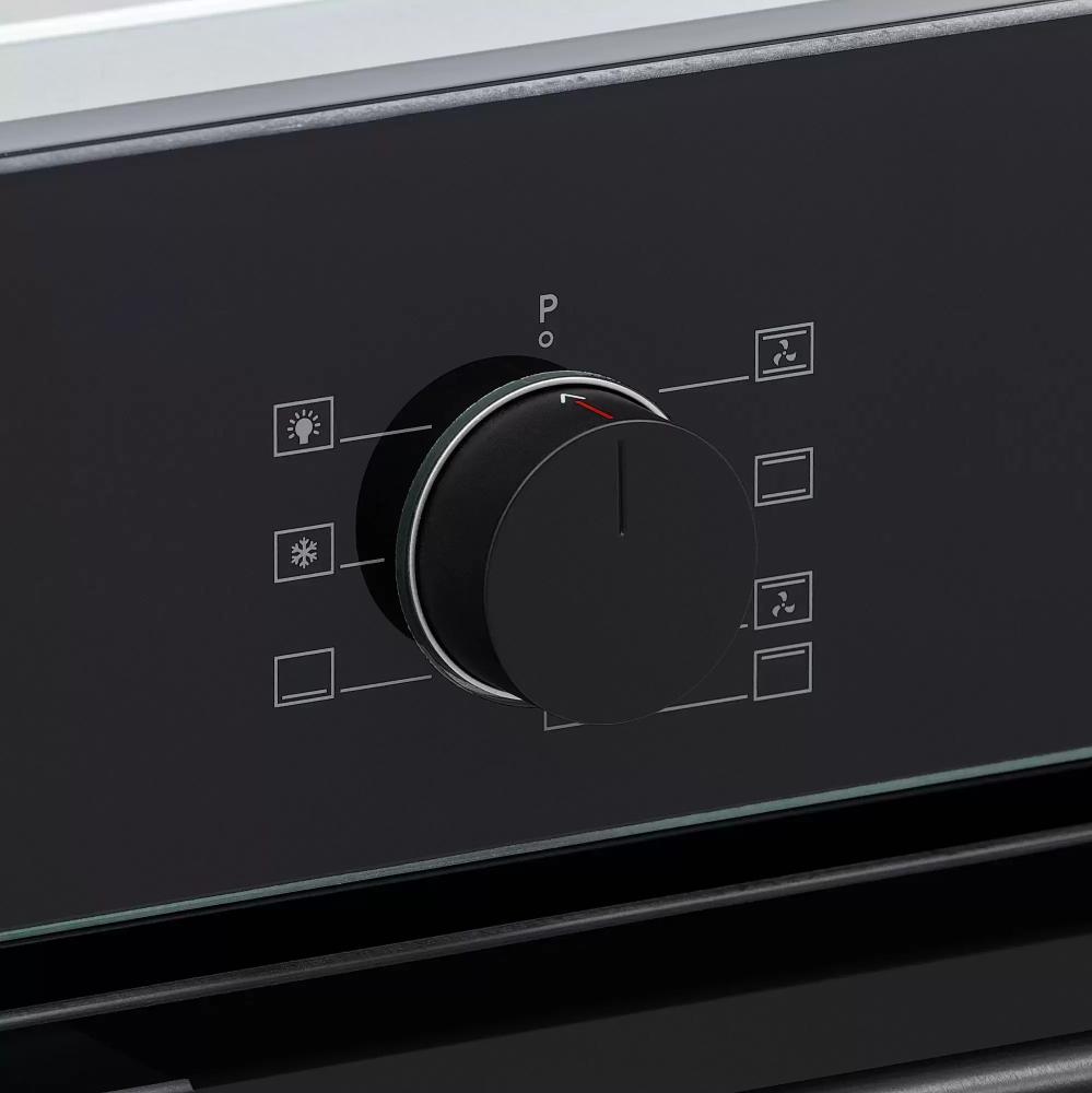 Особенности дизайна и внешней панели управления — также важный пункт при выборе духовки на кухню. В данной модели нужно обратить внимание на цвет — черный,