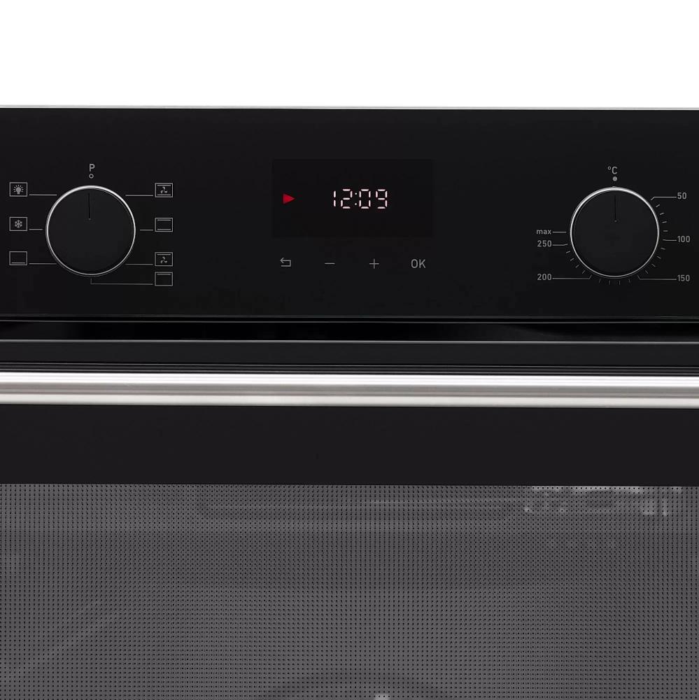 Особенности дизайна и внешней панели управления — также важный пункт при выборе духовки на кухню. В данной модели нужно обратить внимание на цвет — черный,