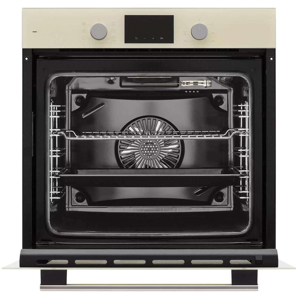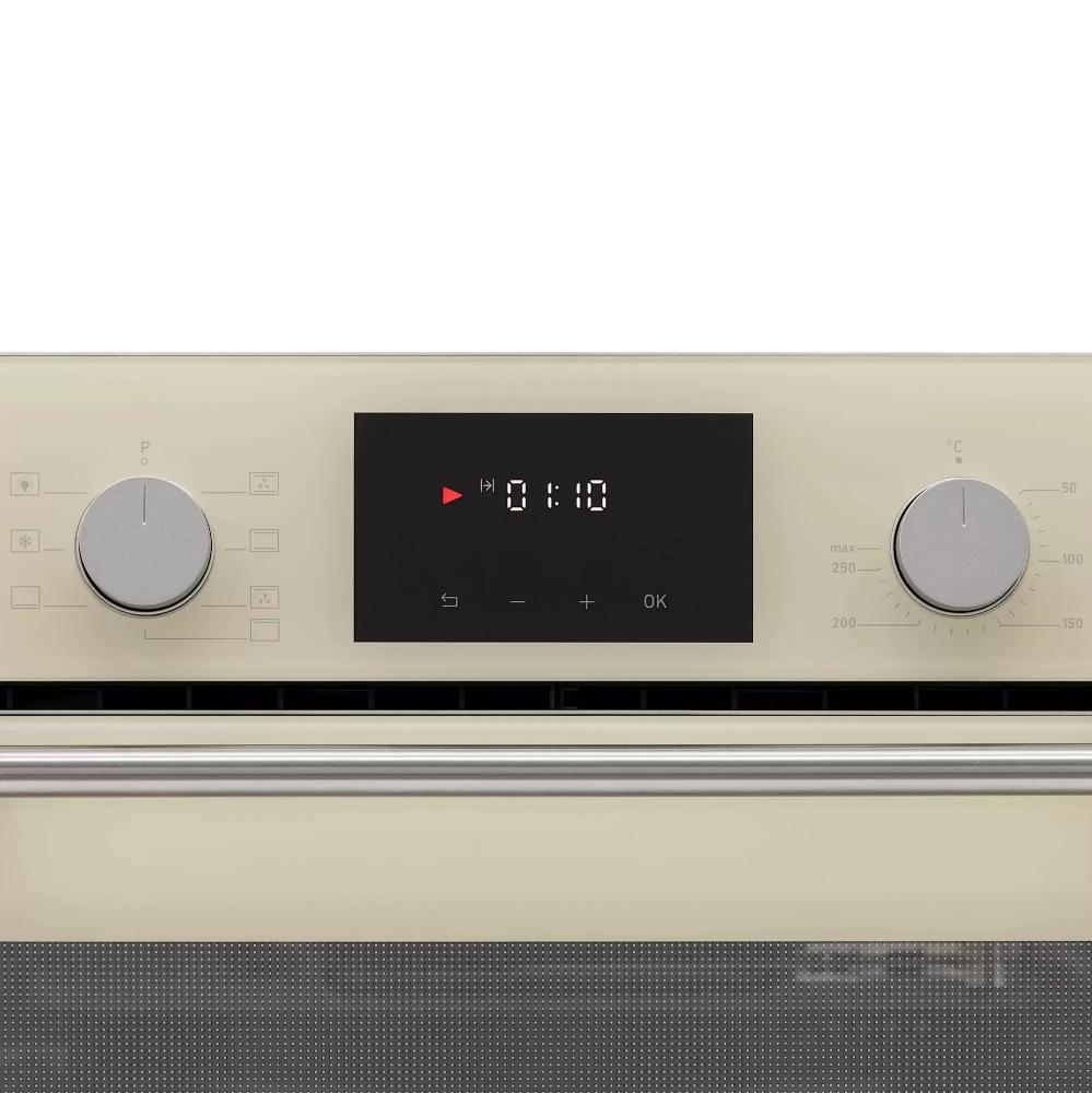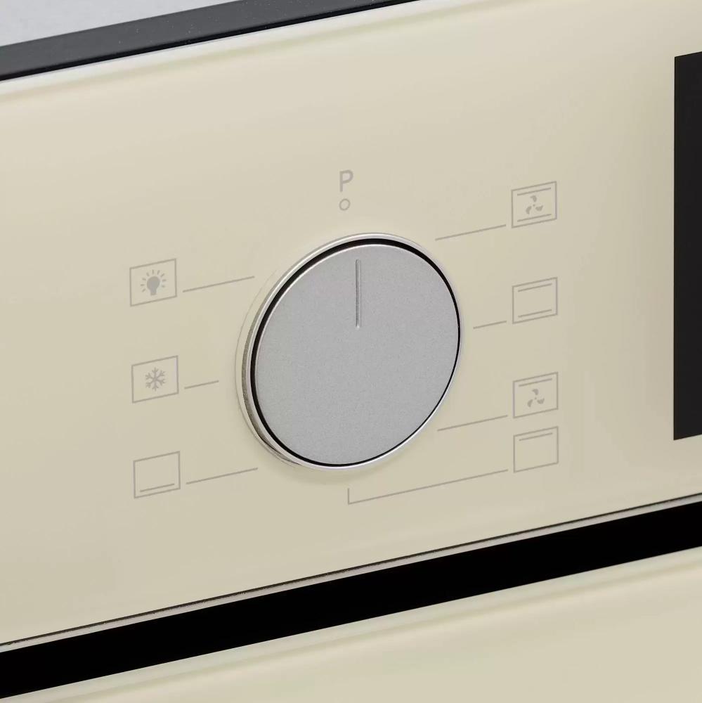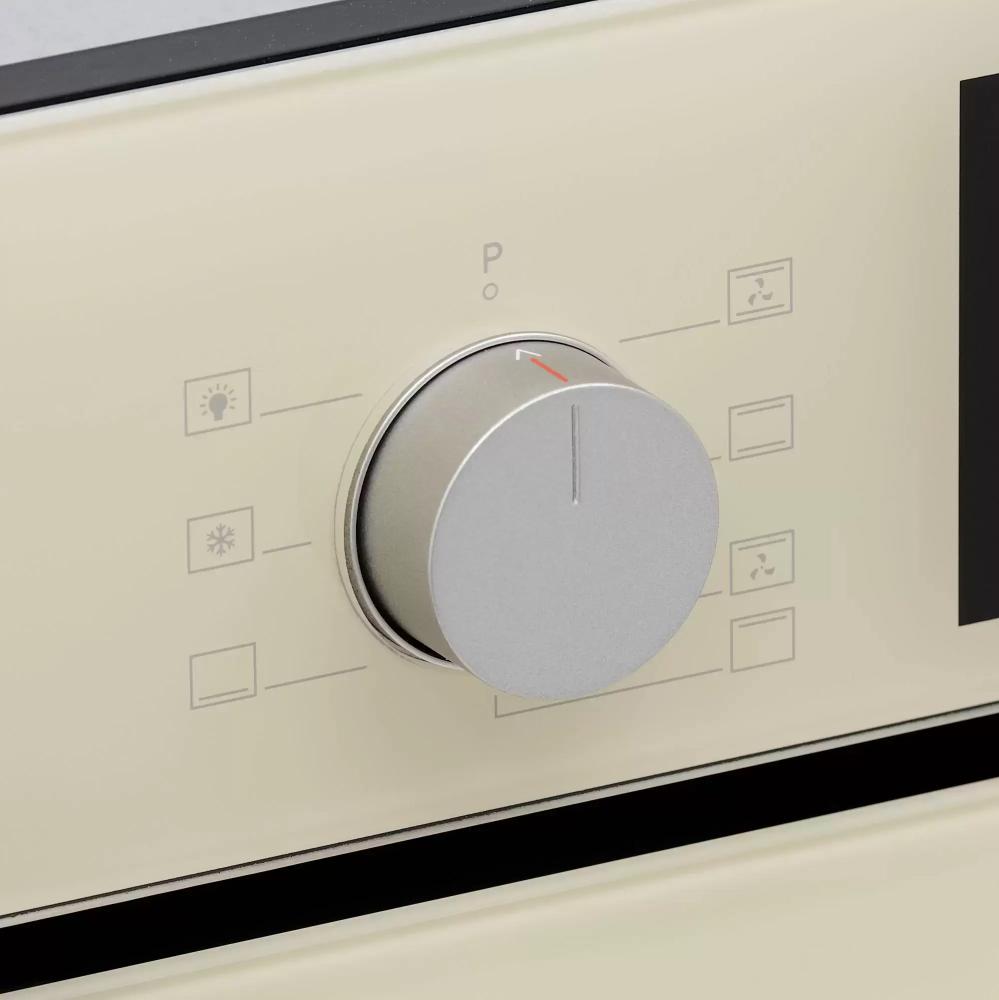 Особенности дизайна и внешней панели управления — также важный пункт при выборе духовки на кухню. В данной модели нужно обратить внимание на цвет — бежевый,