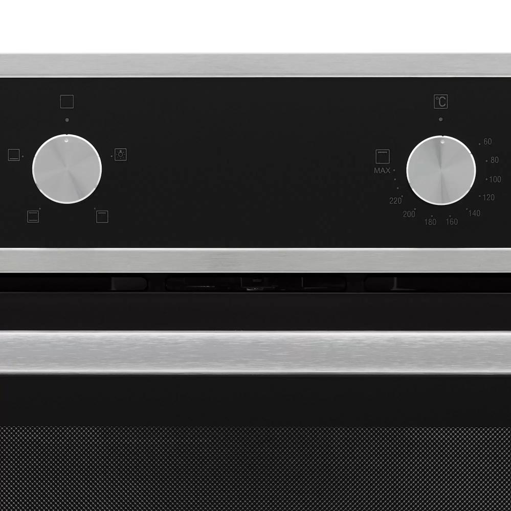 Особенности дизайна и внешней панели управления — также важный пункт при выборе духовки на кухню. В данной модели нужно обратить внимание на цвет — черный/нержавеющая сталь, Механическая панель управления позволяет быстро разобраться в настройке программ и не требует чрезмерных усилий.