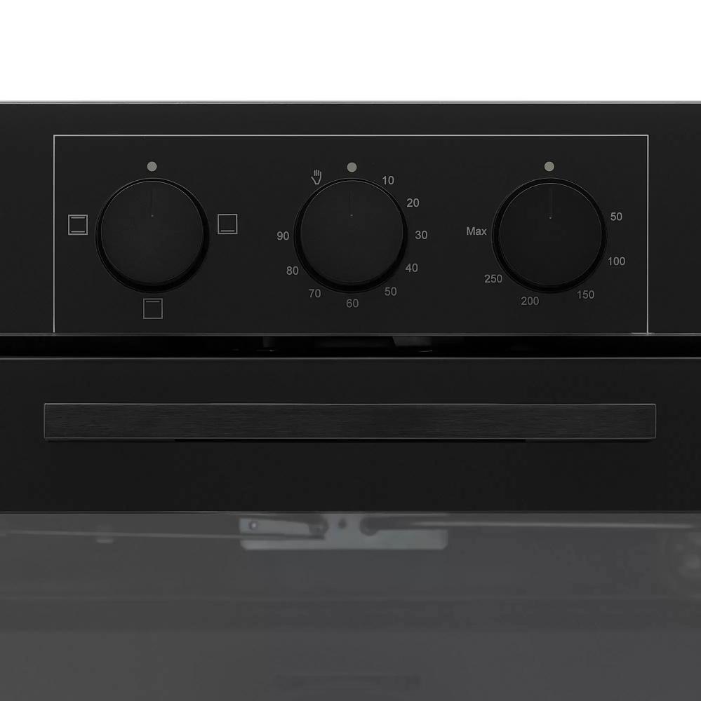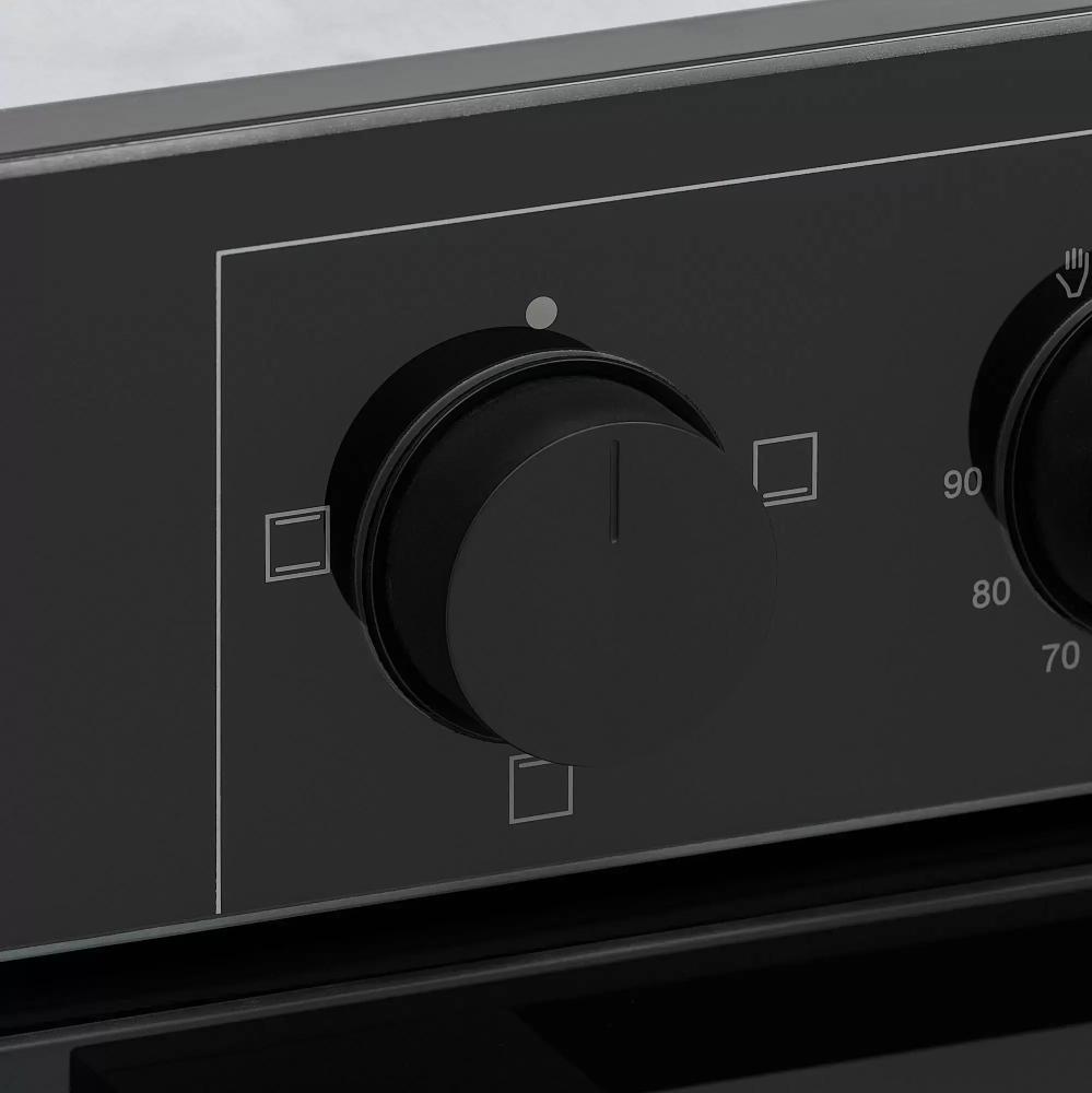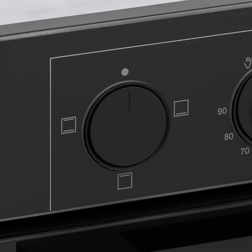 Особенности дизайна и внешней панели управления — также важный пункт при выборе духовки на кухню. В данной модели нужно обратить внимание на цвет — черный, Механическая панель управления позволяет быстро разобраться в настройке программ и не требует чрезмерных усилий.