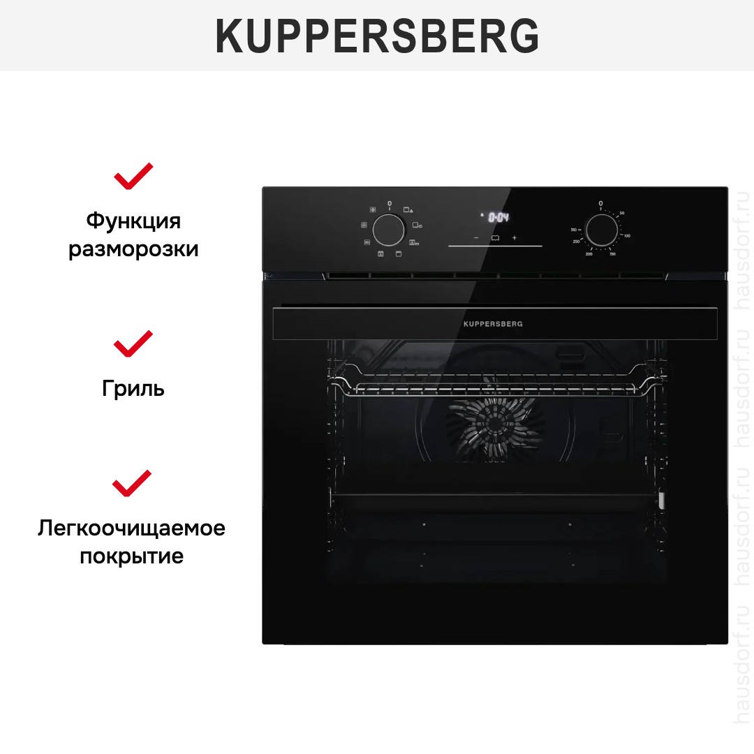 Готовьте свои лучшие блюда и пробуйте новые рецепты с духовым шкафом Kuppersberg HO 608 Black Glass! Стандартные размеры и большой объем внутренней камеры — выбор тех, кто много готовит для семьи или частых праздничных встреч с друзьями. Желательно заранее продумать расположение такой модели в кухонном гарнитуре.