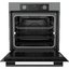 Особенности дизайна и внешней панели управления — также важный пункт при выборе духовки на кухню. В данной модели нужно обратить внимание на цвет — графит,