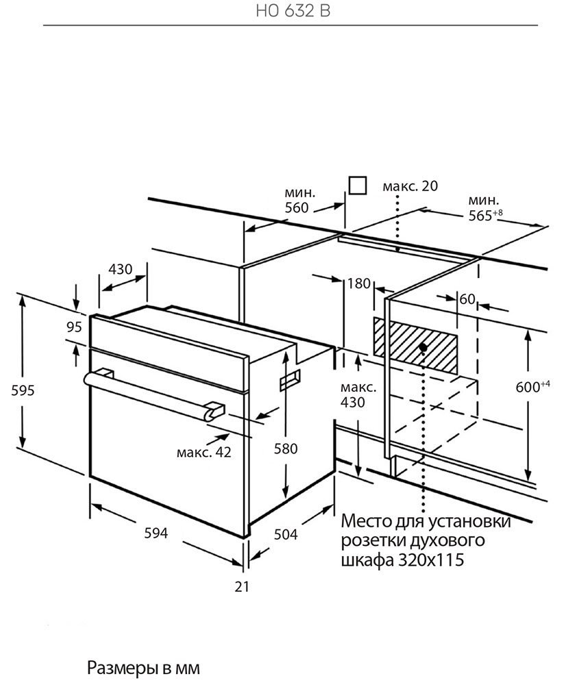 Ко всем моделям прилагаются подробные инструкции по установке, где указаны точные размеры ниши для каждой конкретной духовки.