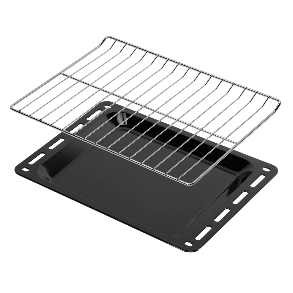 В стандартную комплектацию любого духового шкафа входят один или два противня — эмалированных или с антипригарным покрытием — и решетка. Единственный противень, как правило, имеет низкие бортики и предназначается для приготовления выпечки. Если духовка комплектуется двумя противнями, то второй отличается более высокими бортиками — его можно использовать для запекания мяса, птицы, овощных блюд. На решетке в духовке, не оснащенной грилем, обычно устанавливаются формы для запекания — стальные, керамические или стеклянные. В духовках премиум-класса количество противней может быть увеличено: к стандартному комплекту добавляются противни с перфорацией для мяса, специальные поддоны для сбора выделившегося сока.