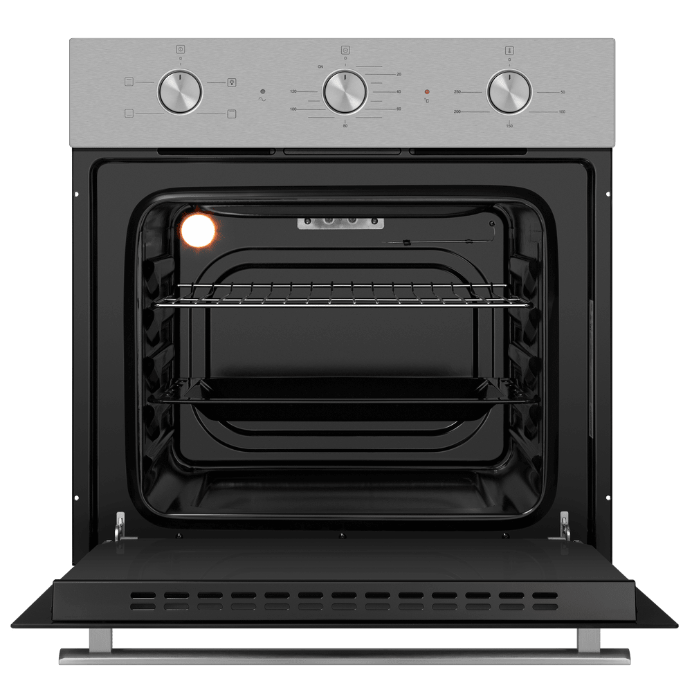 Как известно, стандартная ширина кухонной тумбы составляет около 60 см — поэтому за стандартную ширину встраиваемого духового шкафа принимают 59,5 см. Такие духовки имеют по 3–4 уровня приготовления, в них можно приготовить достаточно объемные блюда. Минимальное значение ширины духовки также соотносится с размерами тумбы для встраивания — оно составляет 44–45 см. Это хороший выбор для небольшой кухни, однако узкие духовые шкафы имеют свои недостатки — в частности, в них невозможно приготовить большой пирог или торт, запечь целый окорок, индейку или большую рыбу.