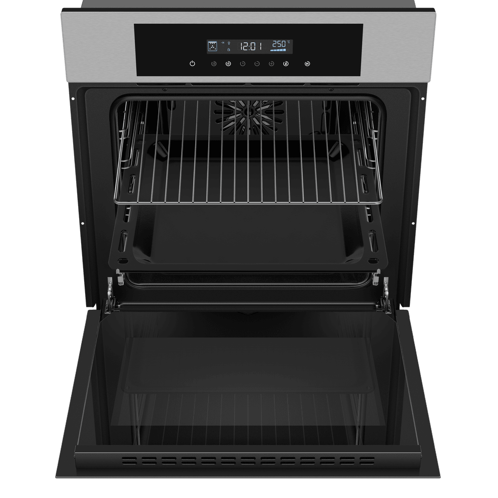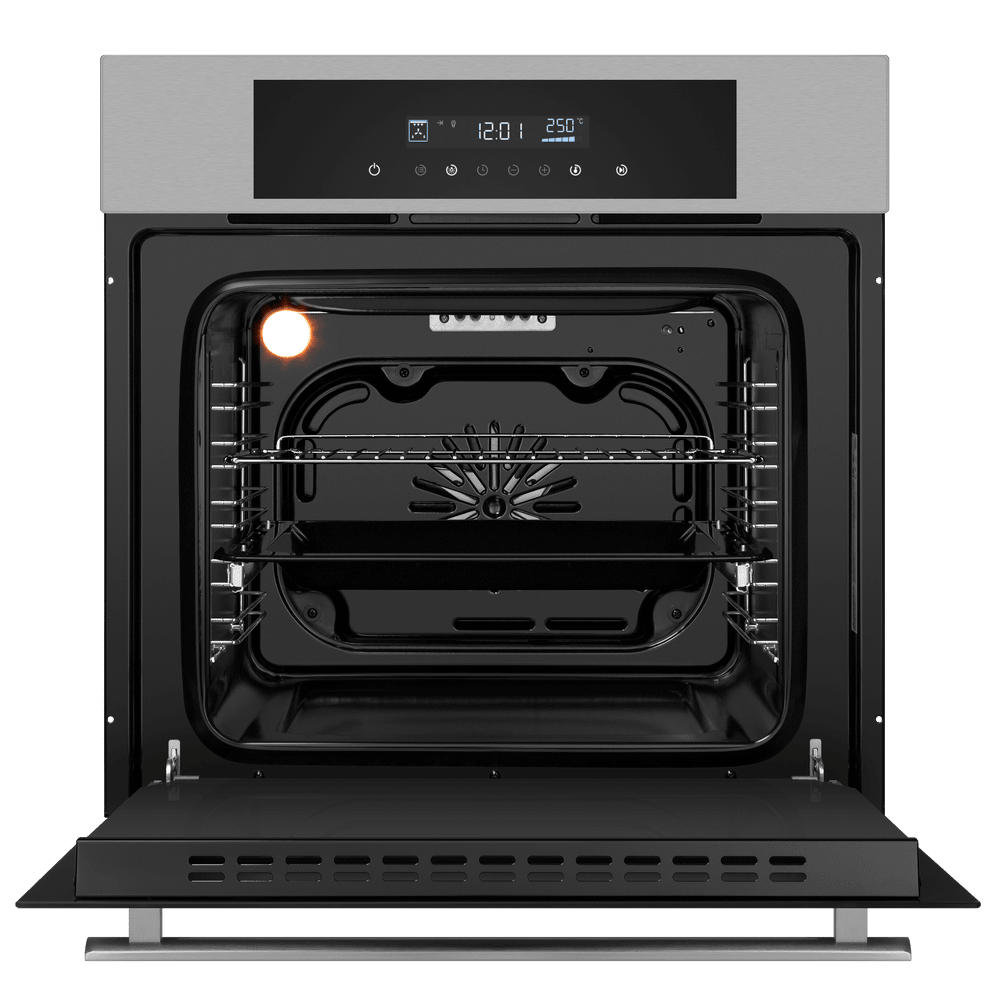 Духовые шкафы объема от 70 литров и более — вместительные полноразмерные приборы, которые отличаются большим набором функциональных возможностей. Высота таких духовок обычно составляет 60 см, ширина же может варьироваться в широком диапазоне: от стандартных 60 см до 90 см и даже 120 см. Количество уровней приготовления может достигать пяти.