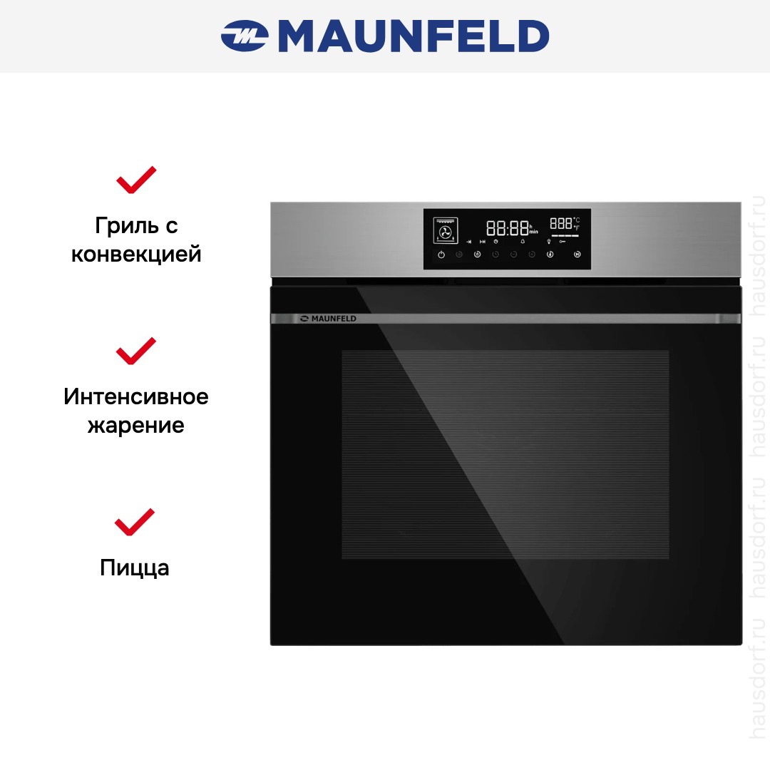 Количество режимов работы в духовом шкафу Маунфилд: 10. В число доступных программ входят: классический нагрев, конвекция, гриль для создания хрустящей корочки, пицца, и другие. Помимо основных программ воспользуйтесь специальными возможностями этого прибора: быстрым разогревом для ускорения работы; и другими.