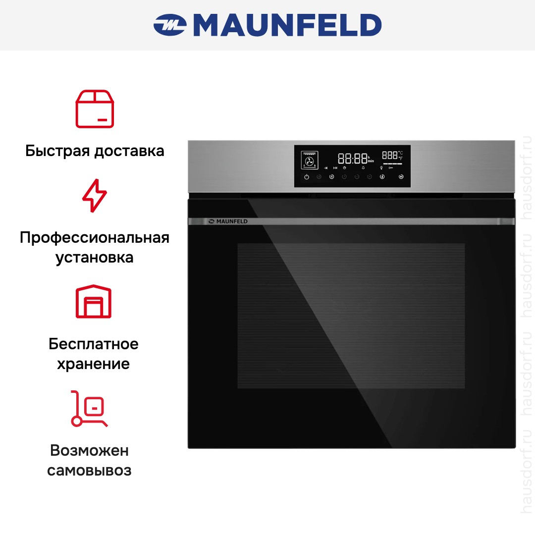 Готовьте свои лучшие блюда и пробуйте новые рецепты с духовым шкафом Maunfeld AEOD76106S! Стандартные размеры и большой объем внутренней камеры — выбор тех, кто много готовит для семьи или частых праздничных встреч с друзьями. Желательно заранее продумать расположение такой модели в кухонном гарнитуре.