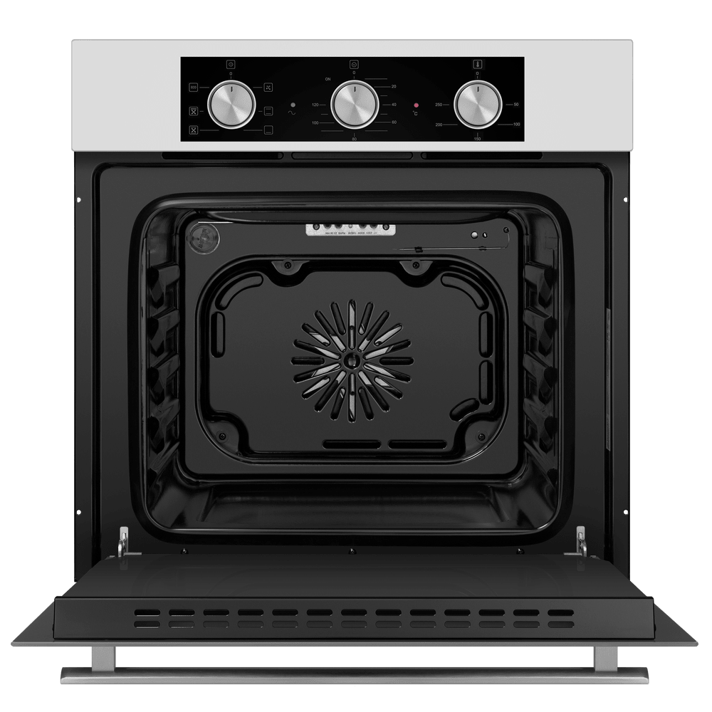 Белый фасад духовки — классический вариант: именно в белом цвете эти приборы производились многие десятилетия. Он стильно выглядит, менее маркий, более удобный в уходе: подойдет как для классических, так и для современных интерьеров. Кроме того, белая духовка будет оптимальным вариантом для небольшой кухни, так как этот цвет зрительно расширяет пространство.