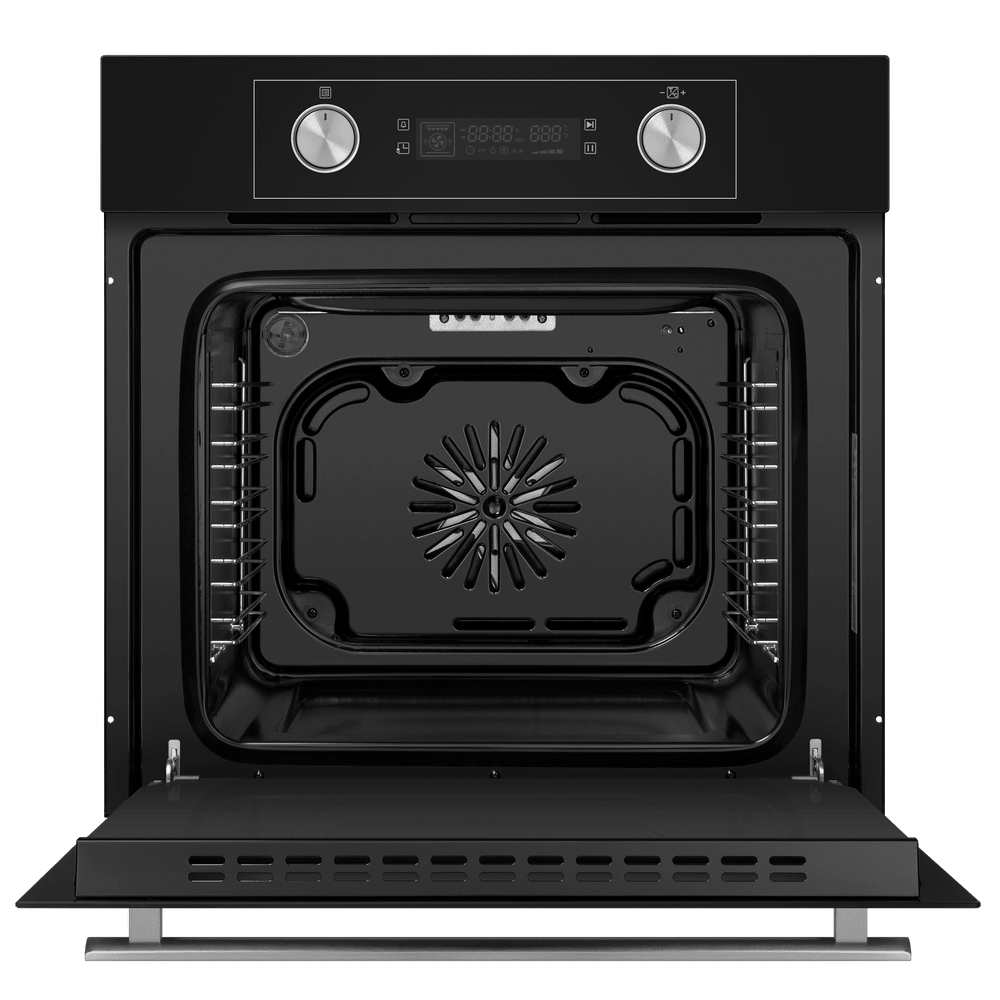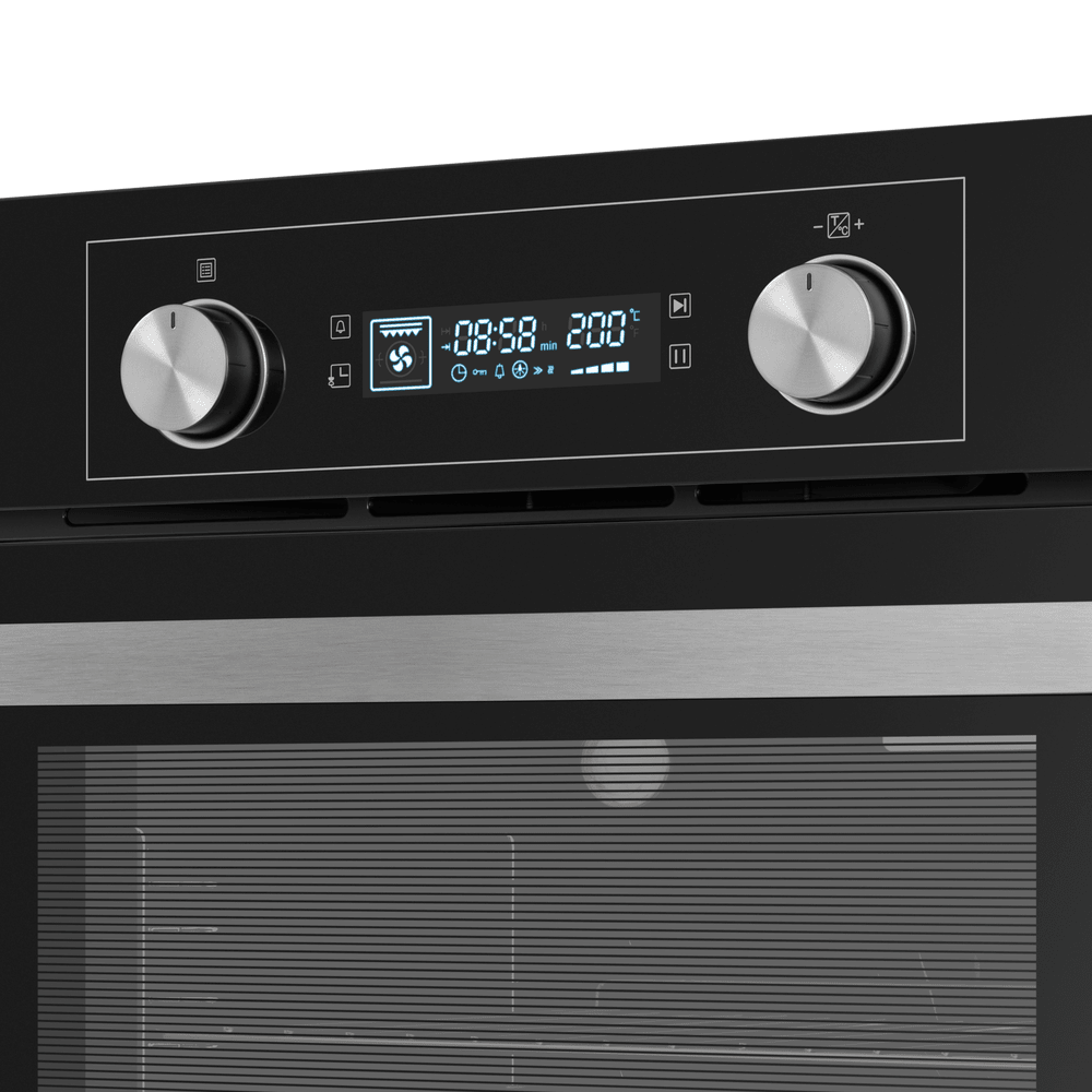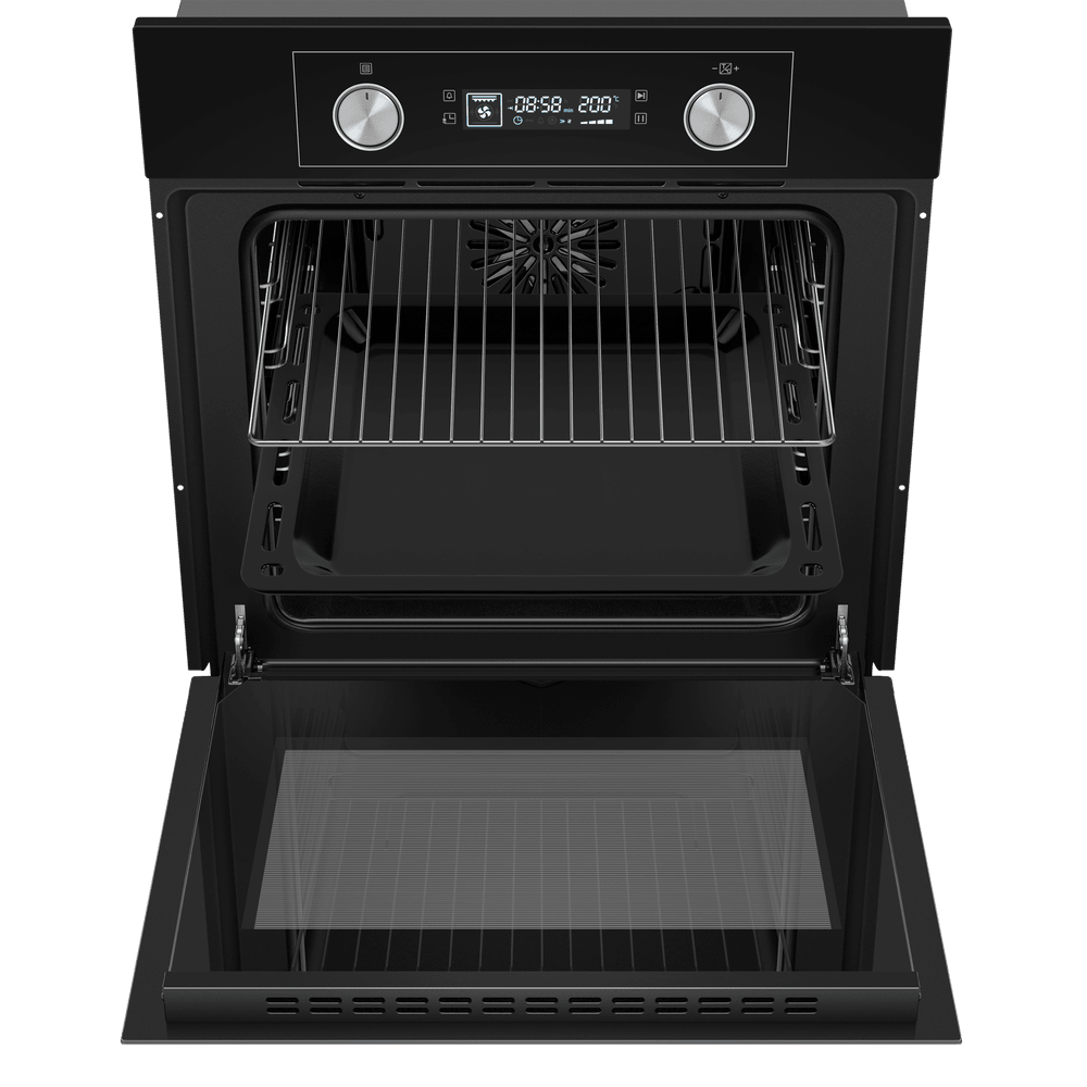 Особенности дизайна и внешней панели управления — также важный пункт при выборе духовки на кухню. В данной модели нужно обратить внимание на цвет — черный,