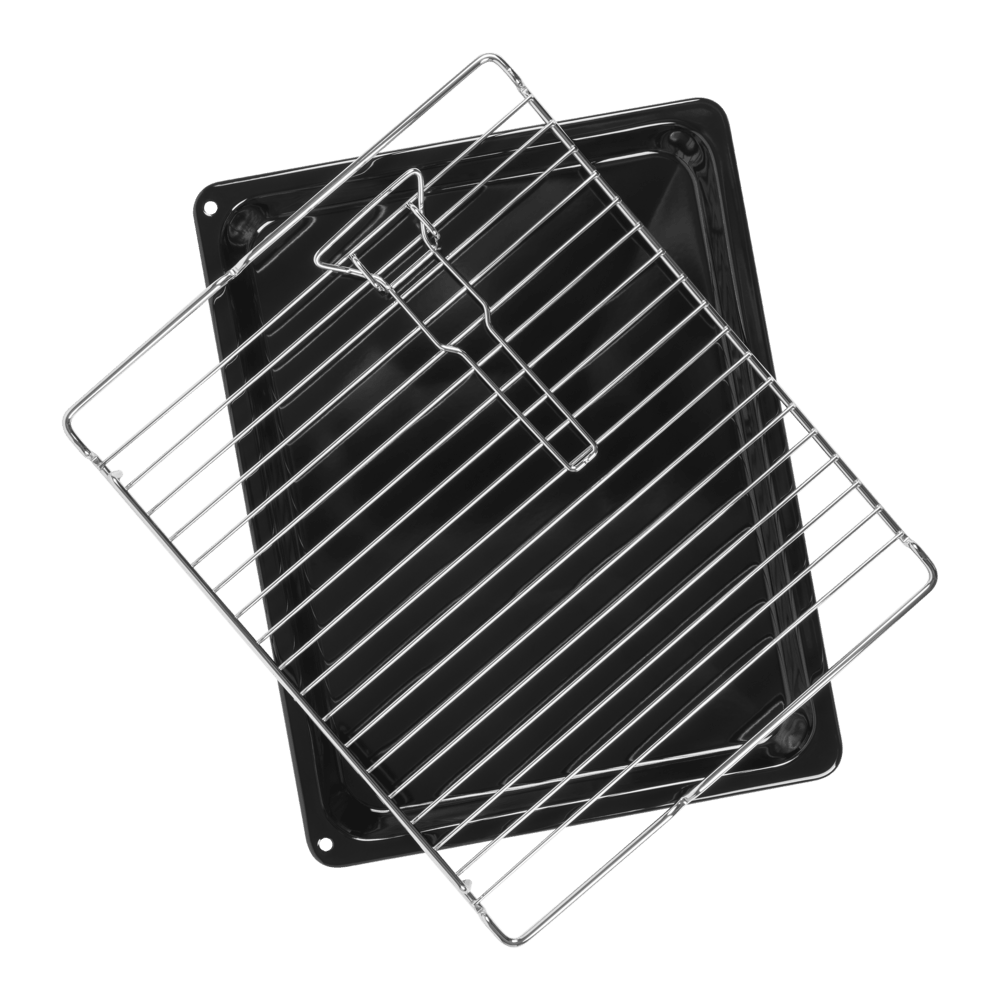 В стандартную комплектацию любого духового шкафа входят один или два противня — эмалированных или с антипригарным покрытием — и решетка. Единственный противень, как правило, имеет низкие бортики и предназначается для приготовления выпечки. Если духовка комплектуется двумя противнями, то второй отличается более высокими бортиками — его можно использовать для запекания мяса, птицы, овощных блюд. На решетке в духовке, не оснащенной грилем, обычно устанавливаются формы для запекания — стальные, керамические или стеклянные. В духовках премиум-класса количество противней может быть увеличено: к стандартному комплекту добавляются противни с перфорацией для мяса, специальные поддоны для сбора выделившегося сока.