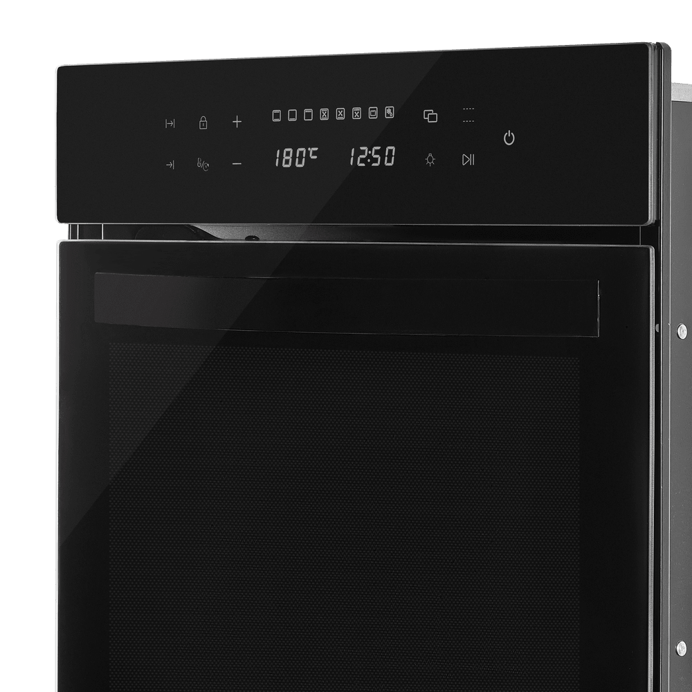 Особенности дизайна и внешней панели управления — также важный пункт при выборе духовки на кухню. В данной модели нужно обратить внимание на цвет — черный,