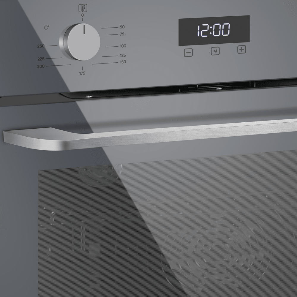 Особенности дизайна и внешней панели управления — также важный пункт при выборе духовки на кухню. В данной модели нужно обратить внимание на охлаждение двери, чтобы поверхность и мебель вокруг не нагревались.