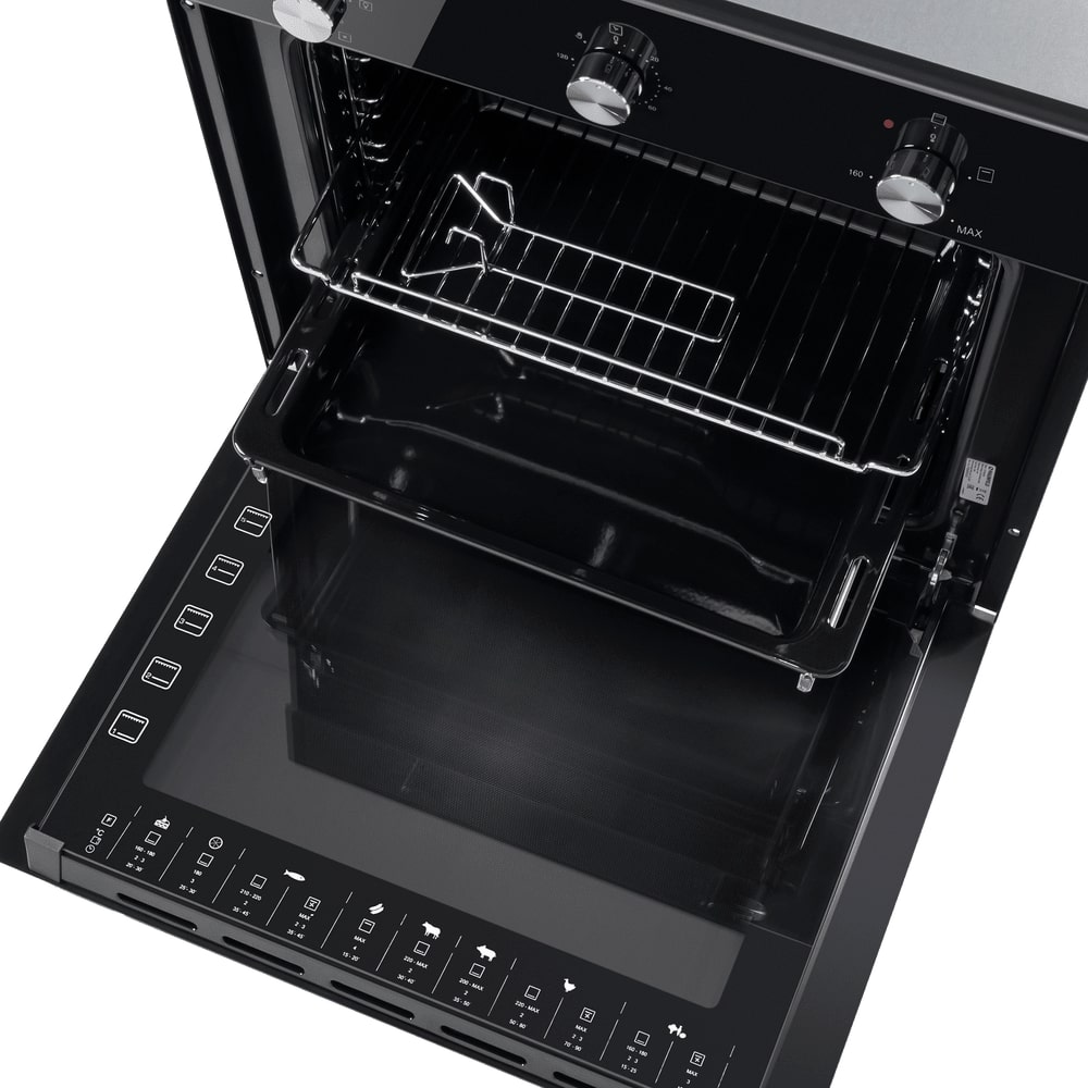 Особенности дизайна и внешней панели управления — также важный пункт при выборе духовки на кухню. В данной модели нужно обратить внимание на цвет — черный, охлаждение двери, чтобы поверхность и мебель вокруг не нагревались. Механическая панель управления позволяет быстро разобраться в настройке программ и не требует чрезмерных усилий.