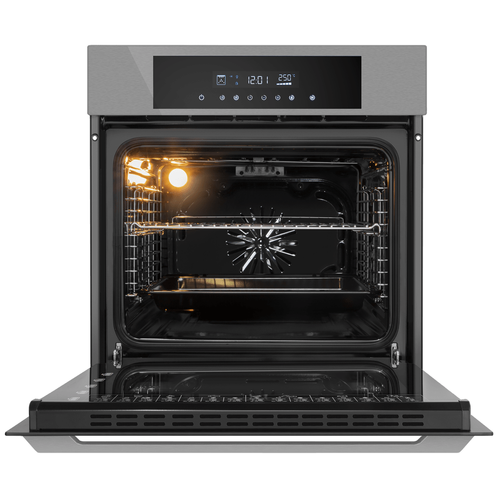 Освещение — опция, которая имеется во всех современных духовых шкафах, как электрических, так и газовых. В некоторых моделях освещение включается, как только запускается процесс приготовления. В другом, более удобном варианте, подсветка автоматически срабатывает только при открытой дверце, однако может быть включена принудительно при нажатии на соответствующую кнопку панели управления.