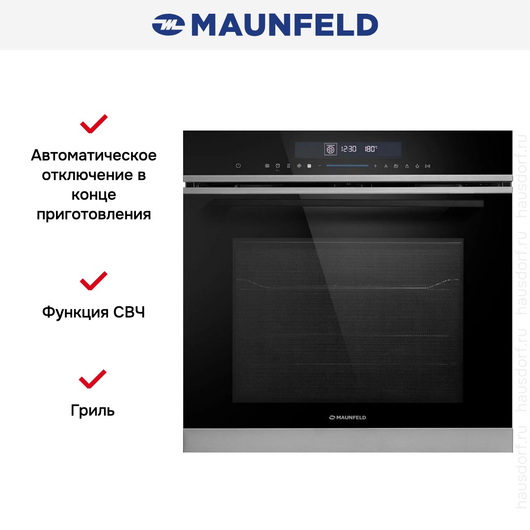 Количество режимов работы в духовом шкафу Маунфилд: 17. В число доступных программ входят: классический нагрев, нижний нагрев, конвекция, приготовление с помощью микроволн, гриль для создания хрустящей корочки, пицца, и другие. Тип гриля в этой модели — электрический.