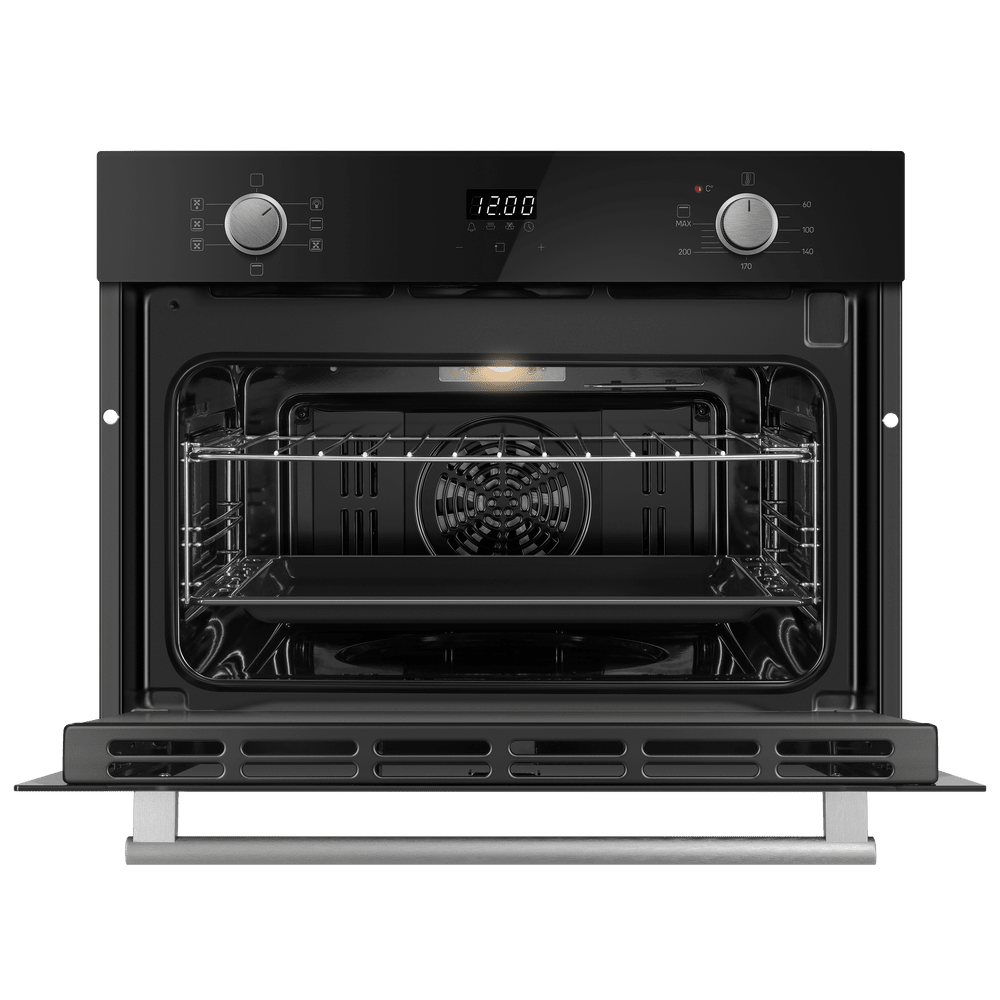 Компактные духовки — оптимальный выбор для тех, кто хочет питаться вкусно и разнообразно, но не располагает кухней большой площади. Подобные модели подойдут также для небольших семей или для тех, кто привык готовить достаточно редко. Объем рабочей камеры у компактных моделей не превышает 55 литров. Ширина их остается стандартной — около 60 см, высота составляет обычно 45 см, а энергопотребление и мощность несколько меньше, чем у полноразмерных моделей. Компактные духовки имеют до трех уровней приготовления.