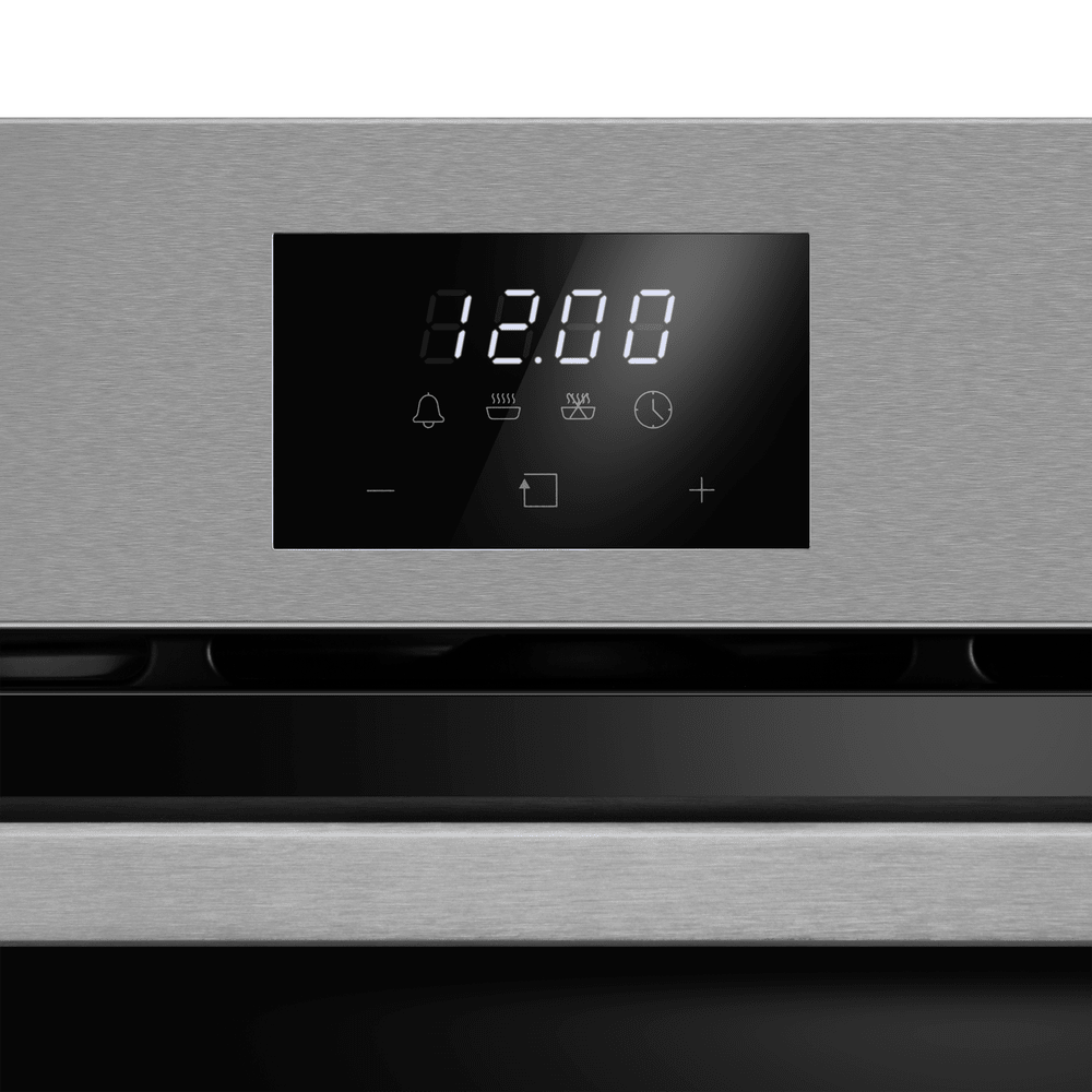 Особенности дизайна и внешней панели управления — также важный пункт при выборе духовки на кухню. В данной модели нужно обратить внимание на цвет — нержавеющая сталь, охлаждение двери, чтобы поверхность и мебель вокруг не нагревались.