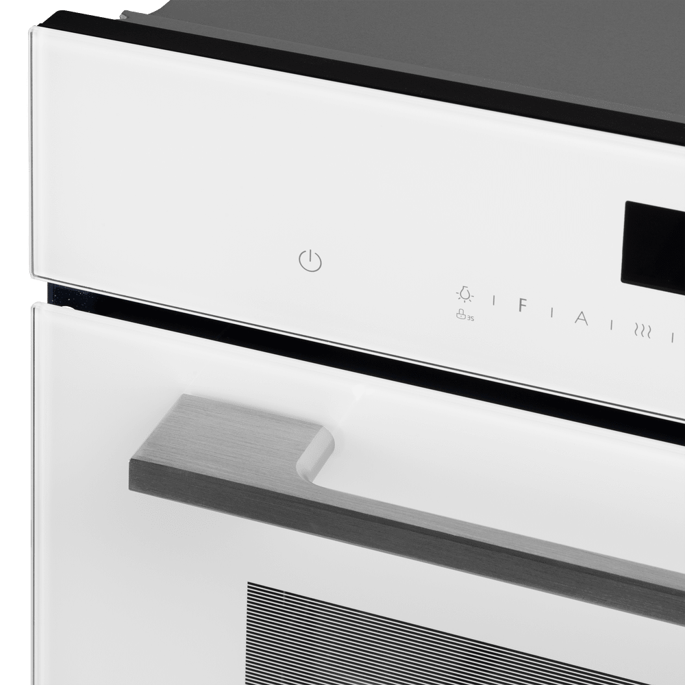 Особенности дизайна и внешней панели управления — также важный пункт при выборе духовки на кухню. В данной модели нужно обратить внимание на цвет — белый,