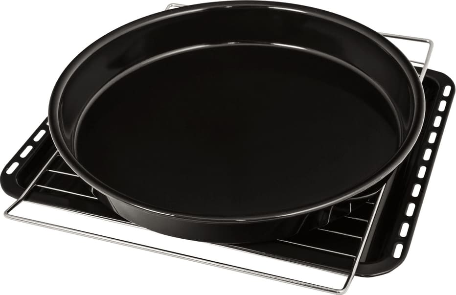 В стандартную комплектацию любого духового шкафа входят один или два противня — эмалированных или с антипригарным покрытием — и решетка. Единственный противень, как правило, имеет низкие бортики и предназначается для приготовления выпечки. Если духовка комплектуется двумя противнями, то второй отличается более высокими бортиками — его можно использовать для запекания мяса, птицы, овощных блюд. На решетке в духовке, не оснащенной грилем, обычно устанавливаются формы для запекания — стальные, керамические или стеклянные. В духовках премиум-класса количество противней может быть увеличено: к стандартному комплекту добавляются противни с перфорацией для мяса, специальные поддоны для сбора выделившегося сока.