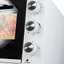 Особенности дизайна и внешней панели управления — также важный пункт при выборе духовки на кухню. В данной модели нужно обратить внимание на цвет — белый, Механическая панель управления позволяет быстро разобраться в настройке программ и не требует чрезмерных усилий.