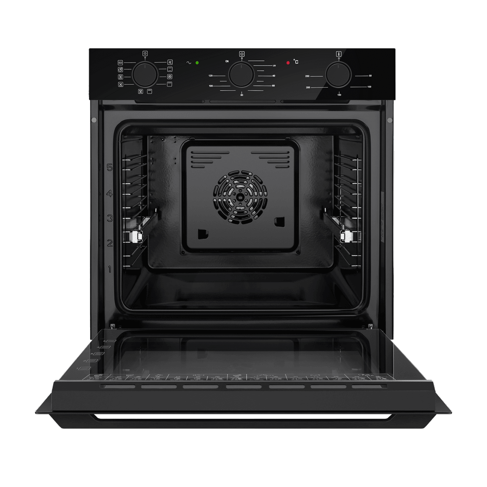 Глубина духовых шкафов, в отличие от их высоты и ширины, не отличается разнообразием. Стандартное значение составляет 54-55 см, что позволяет встраивать устройство в обычную кухонную тумбу или колонну глубиной 60 см так, чтобы оставалось достаточно места до задней стенки мебели или стены кухни для обеспечения нормальной вентиляции. В инструкциях по установке указывается, что это расстояние должно составить не менее 4–5 см. Объем такой духовки может быть равен от 50 до 70 литров.