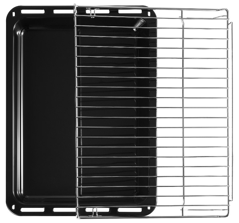 В стандартную комплектацию любого духового шкафа входят один или два противня — эмалированных или с антипригарным покрытием — и решетка. Единственный противень, как правило, имеет низкие бортики и предназначается для приготовления выпечки. Если духовка комплектуется двумя противнями, то второй отличается более высокими бортиками — его можно использовать для запекания мяса, птицы, овощных блюд. На решетке в духовке, не оснащенной грилем, обычно устанавливаются формы для запекания — стальные, керамические или стеклянные. В духовках премиум-класса количество противней может быть увеличено: к стандартному комплекту добавляются противни с перфорацией для мяса, специальные поддоны для сбора выделившегося сока.