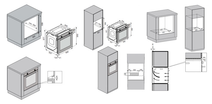 Ко всем моделям прилагаются подробные инструкции по установке, где указаны точные размеры ниши для каждой конкретной духовки.