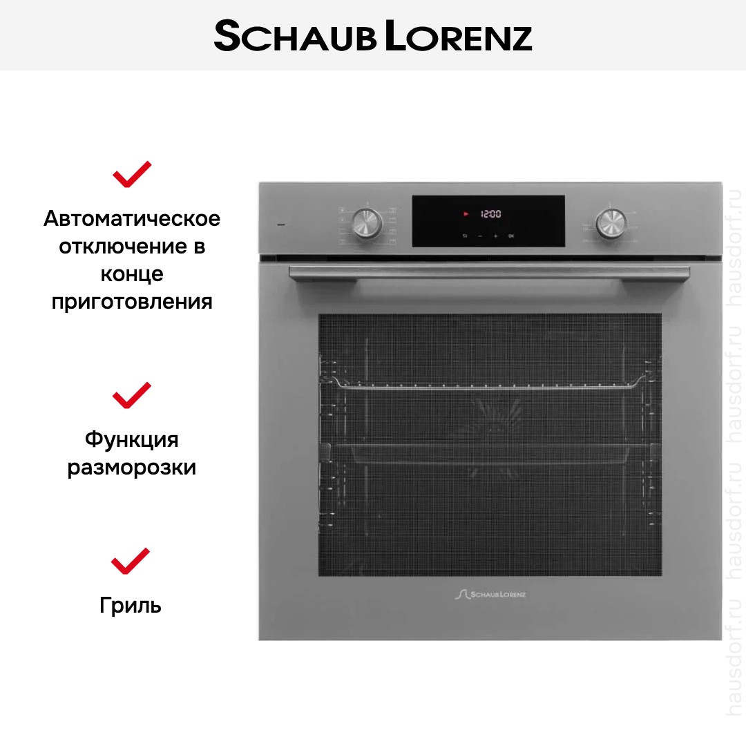 Количество режимов работы в духовом шкафу Шауб Лоренц: 8. В число доступных программ входят: классический нагрев, нижний нагрев, конвекция, гриль для создания хрустящей корочки, и другие. Помимо основных программ воспользуйтесь специальными возможностями этого прибора: размораживанием продуктов, чтобы сократить время на подготовку; вентилятором, совмещенным с грилем; и другими. Тип гриля в этой модели — электрический.