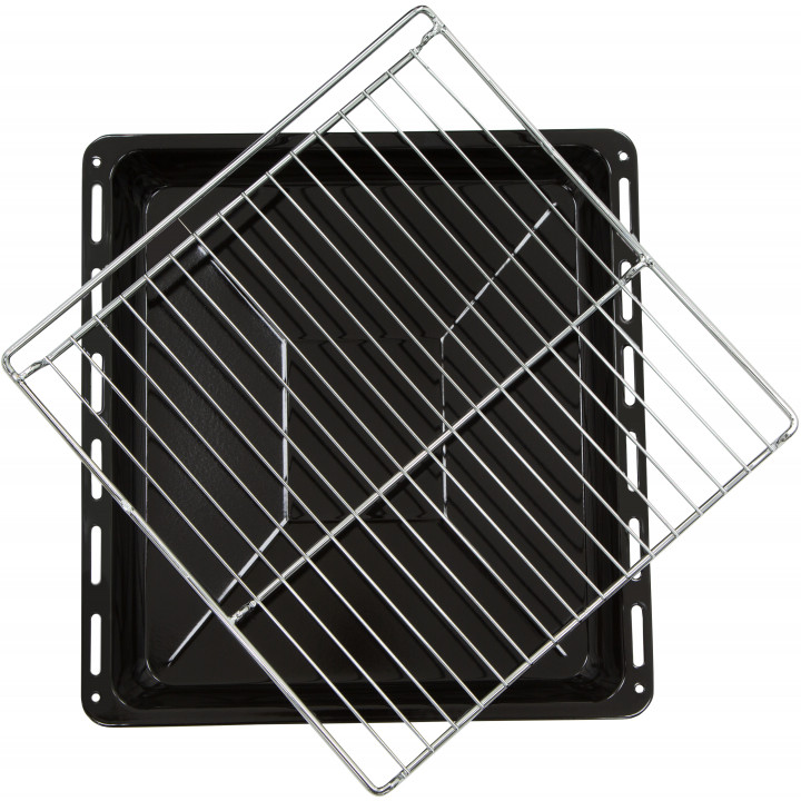 В стандартную комплектацию любого духового шкафа входят один или два противня — эмалированных или с антипригарным покрытием — и решетка. Единственный противень, как правило, имеет низкие бортики и предназначается для приготовления выпечки. Если духовка комплектуется двумя противнями, то второй отличается более высокими бортиками — его можно использовать для запекания мяса, птицы, овощных блюд. На решетке в духовке, не оснащенной грилем, обычно устанавливаются формы для запекания — стальные, керамические или стеклянные. В духовках премиум-класса количество противней может быть увеличено: к стандартному комплекту добавляются противни с перфорацией для мяса, специальные поддоны для сбора выделившегося сока.