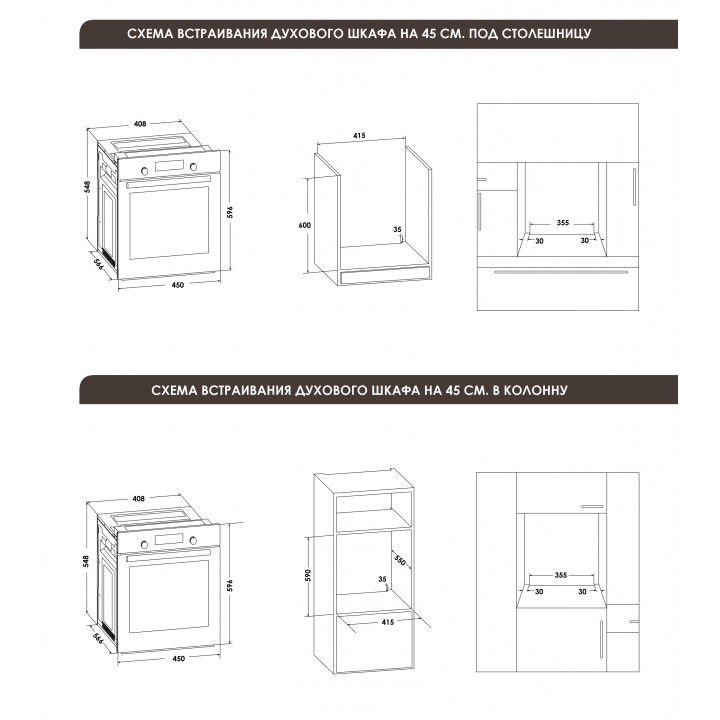 Ко всем моделям прилагаются подробные инструкции по установке, где указаны точные размеры ниши для каждой конкретной духовки.