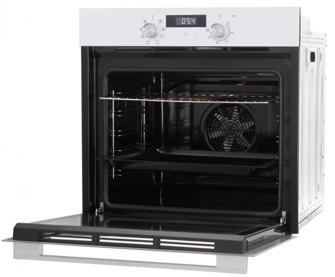 Особенности дизайна и внешней панели управления — также важный пункт при выборе духовки на кухню. В данной модели нужно обратить внимание на цвет — белый, Механическая панель управления позволяет быстро разобраться в настройке программ и не требует чрезмерных усилий.