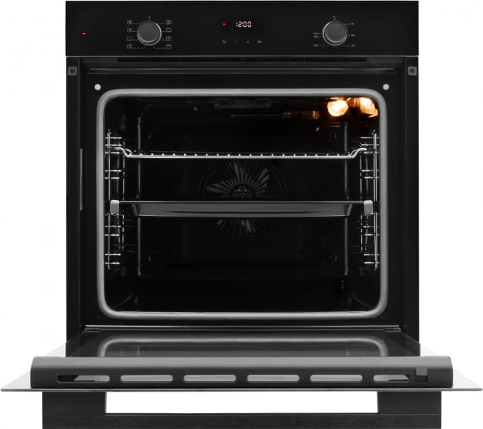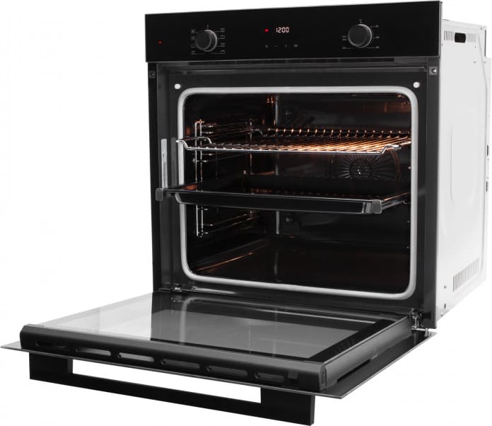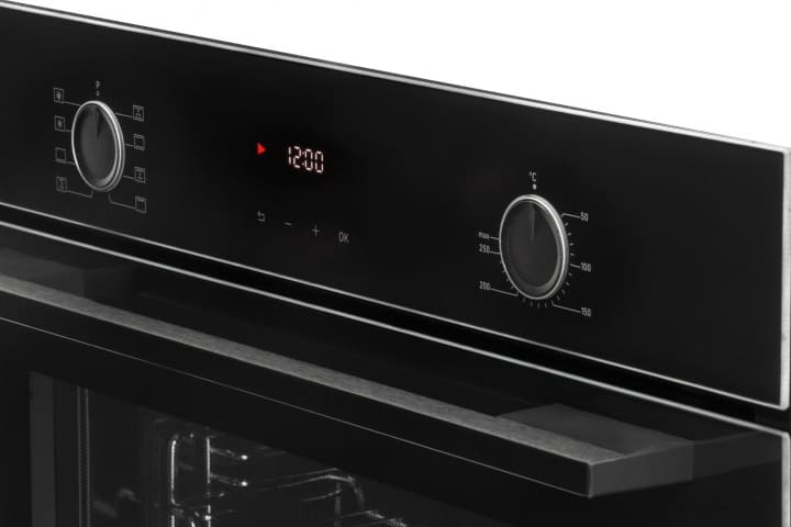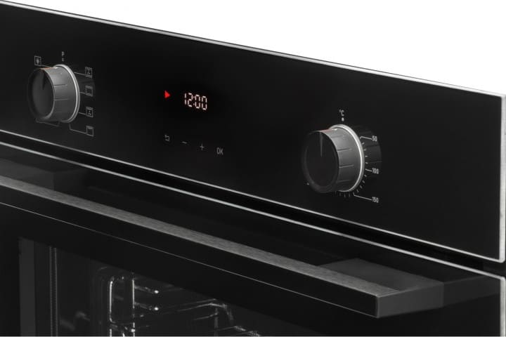Особенности дизайна и внешней панели управления — также важный пункт при выборе духовки на кухню. В данной модели нужно обратить внимание на цвет — черный,