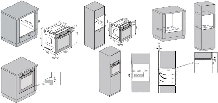 Ко всем моделям прилагаются подробные инструкции по установке, где указаны точные размеры ниши для каждой конкретной духовки.