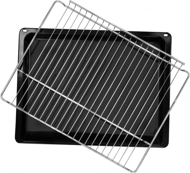 В стандартную комплектацию любого духового шкафа входят один или два противня — эмалированных или с антипригарным покрытием — и решетка. Единственный противень, как правило, имеет низкие бортики и предназначается для приготовления выпечки. Если духовка комплектуется двумя противнями, то второй отличается более высокими бортиками — его можно использовать для запекания мяса, птицы, овощных блюд. На решетке в духовке, не оснащенной грилем, обычно устанавливаются формы для запекания — стальные, керамические или стеклянные. В духовках премиум-класса количество противней может быть увеличено: к стандартному комплекту добавляются противни с перфорацией для мяса, специальные поддоны для сбора выделившегося сока.